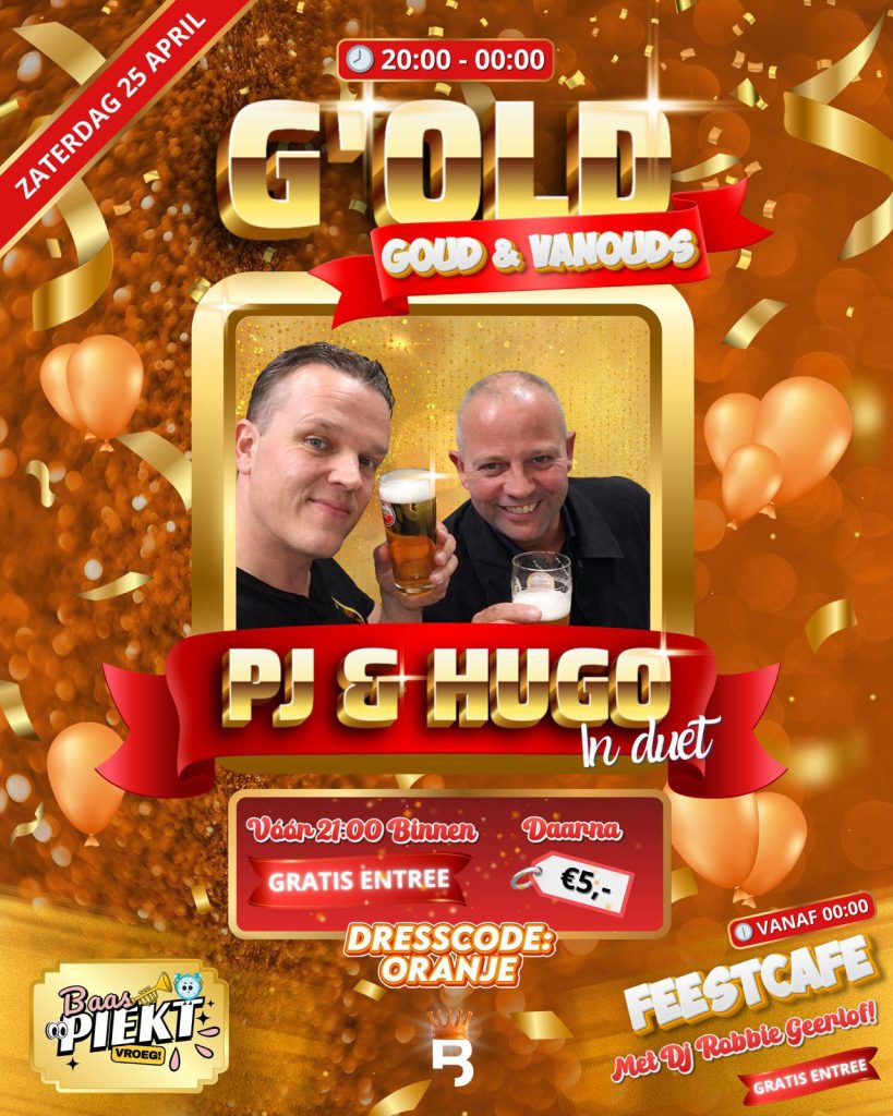 Liefhebbers van een goed feestje kunnen hun agenda erbij pakken: op zaterdag 25 april organiseert Baas Bodegraven een speciale avond onder de naam G’OLD – Baas Piekt Vroeg. Omdat Koningsdag dit jaar door de organisatie zelf vrij wordt gehouden, wordt het feest naar voren gehaald. Tijdens deze avond nemen PJ en Hugo bezoekers mee terug naar de bekende Hoeck-tijd, met een mix van muziek van toen en nu.