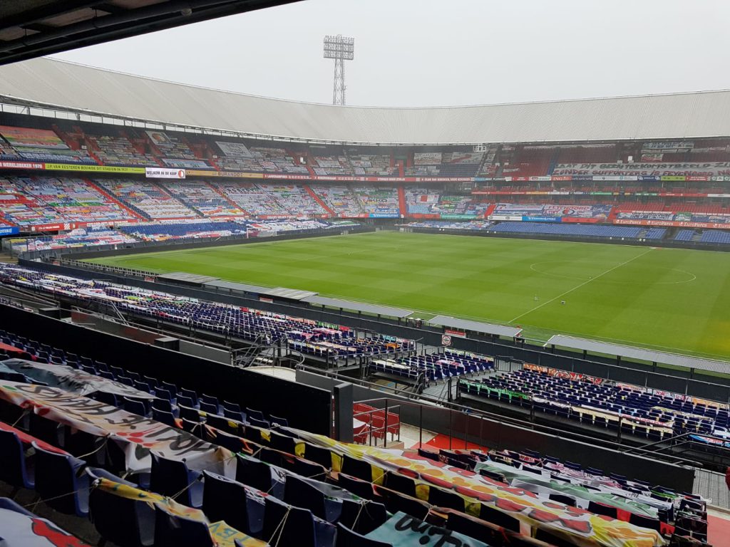 Om twee uur ’s middags was het zo ver. Stijn werd opgewacht door het sfeerteam in het stadion, terwijl hij nog twijfelde over zijn ontwerp voor het spandoek. “Toen ik er was wist ik het ook nog niet, maar uiteindelijk wist ik het wel. Er waren meerdere vormpjes, en ik zocht een kleur die er een beetje bij paste.” Met graffiti ging de negenjarige fan aan de slag. Stijn was er wegens de coronamaatregelen zonder ouders, maar met 12 andere jonge Feyenoord supporters in een ‘spandoekshift’. Eén ding is zeker: bij de komende wedstrijden is de support van Stijn, in de vorm van zijn spandoek, duidelijk aanwezig. Hij voetbalt zelf ook al vanaf zijn vijfde bij ESTO, waar hij startte bij de Ieniemienies.