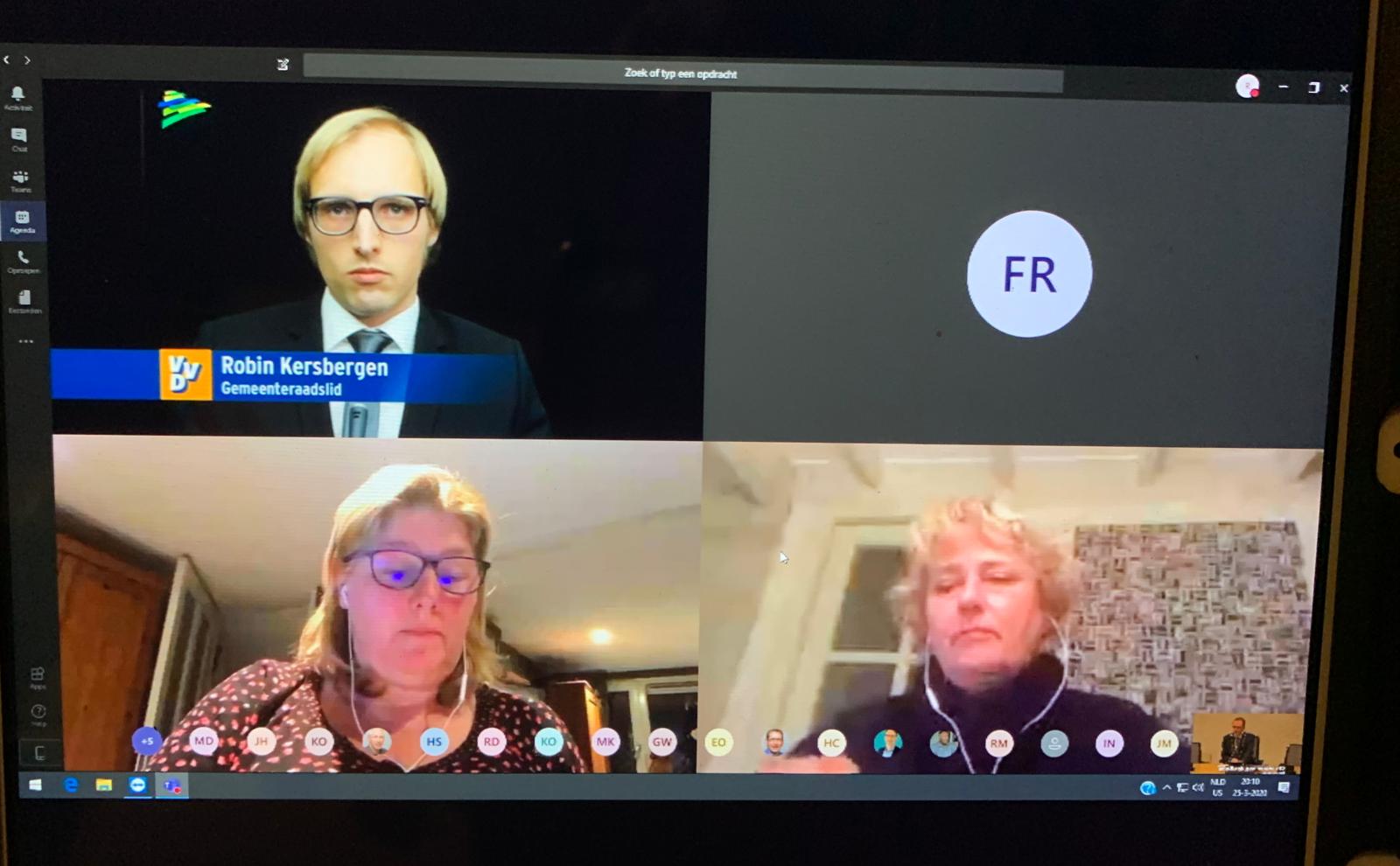 Ieder raadslid kon digitaal meepraten. Dat het wennen was bleek al snel. Niet alle raadsleden kregen het voor elkaar om de video via Teams aan de praat te krijgen.