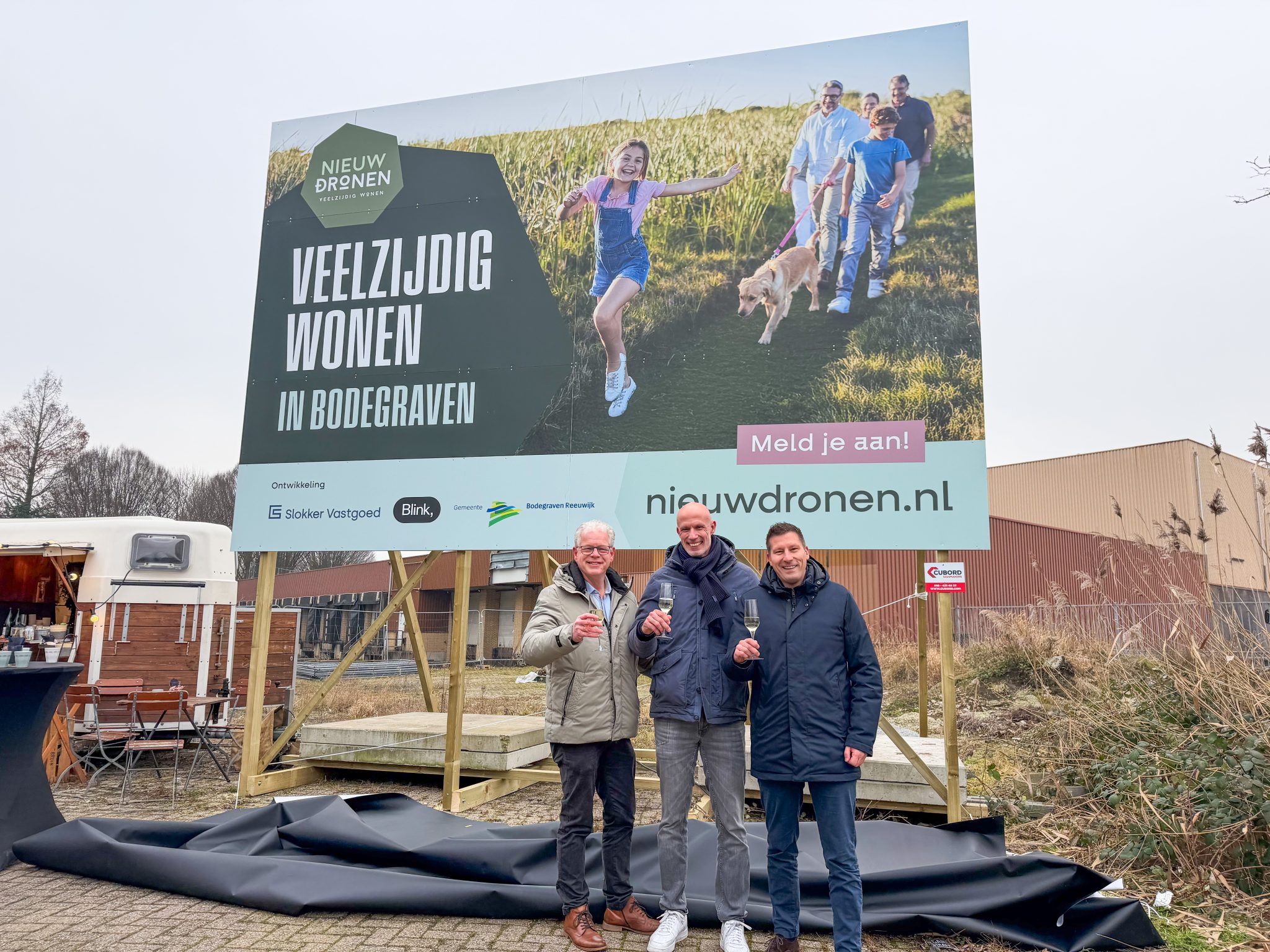 Op donderdag 5 februari is het bouwbord onthuld voor Nieuw Dronen, een nieuw woonproject langs de Oud Bodegraafseweg met 214 woningen. Met deze onthulling is een volgende stap gezet in de ontwikkeling van de nieuwe woonwijk, waar starters, doorstromers en senioren straks een passende woning moeten kunnen vinden.