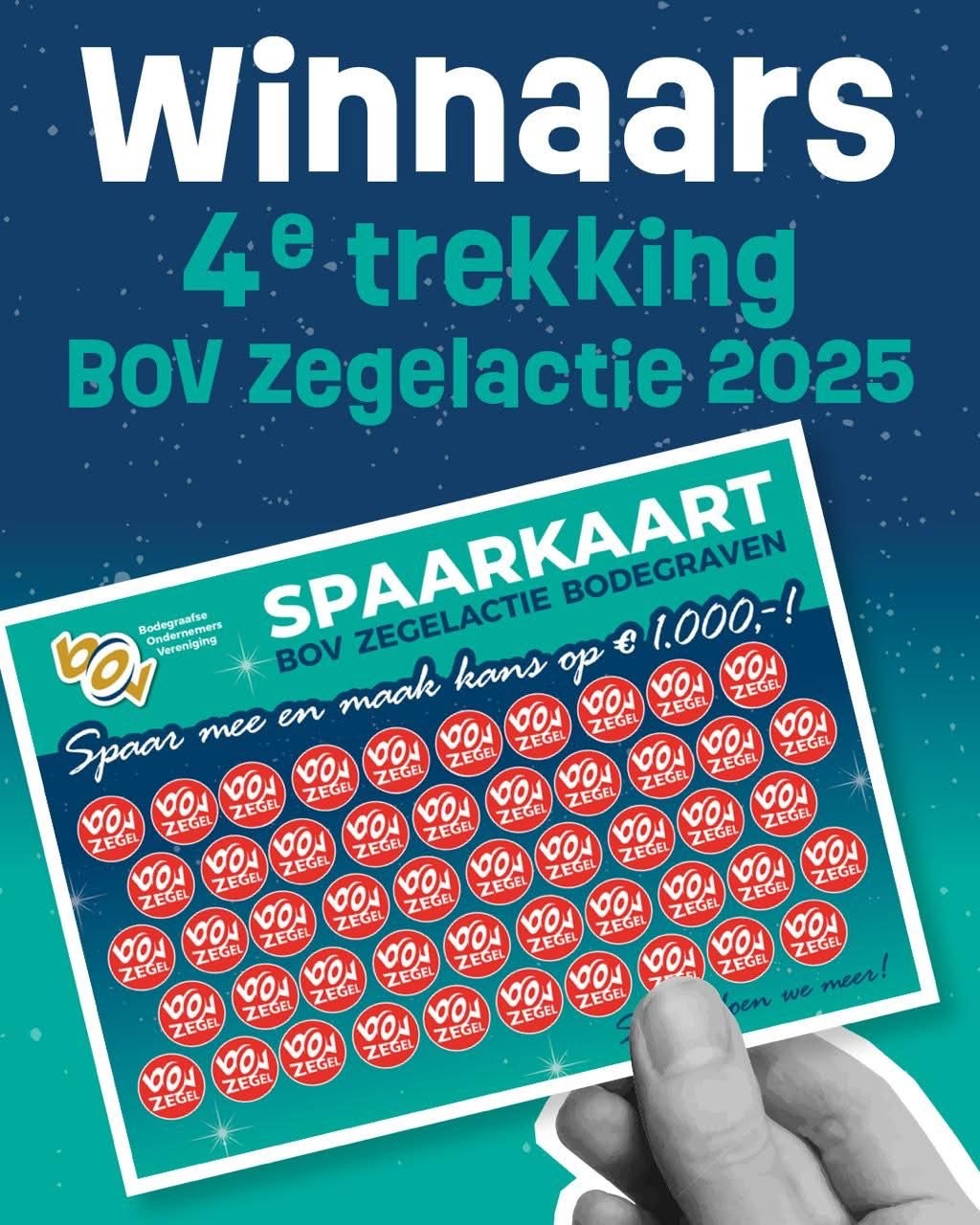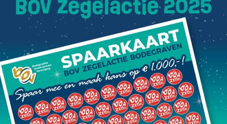 De jaarlijkse BOV Zegelactie is in volle gang en zorgt ook tijdens de feestdagen weer voor extra spanning bij inwoners van Bodegraven-Reeuwijk. Bij iedere besteding van 5 euro bij deelnemende winkels ontvangen klanten een gratis zegel. Volle spaarkaarten kunnen worden ingeleverd in de speciale BOV-bussen, waarna deelnemers automatisch kans maken op mooie prijzen.