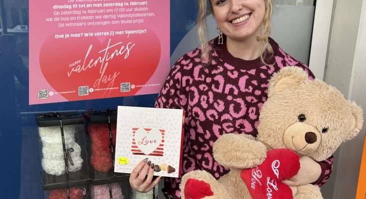 De Valentijnbus staat daar van dinsdag 10 februari tot en met zaterdag 14 februari. Op zaterdag 14 februari om 17.00 uur wordt de bus gesloten en worden dertig Valentijnskaarten getrokken. De speciale Valentijn ontvangt een leuke verrassing, beschikbaar gesteld door lokale ondernemers.