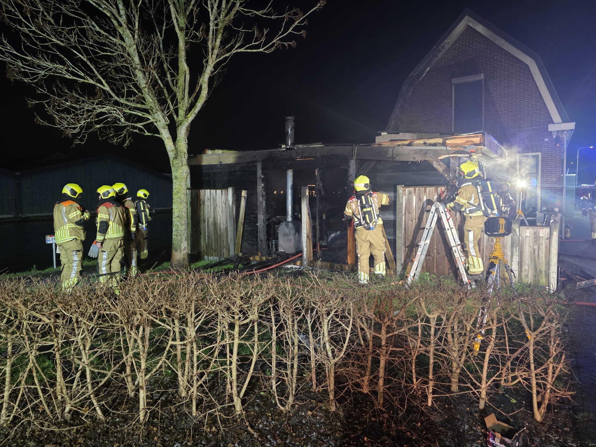 Vrijdagavond 2 januari is omstreeks 21.00 uur brand uitgebroken in een schuurtje aan de Hoge Rijndijk in Nieuwerbrug. De brandweer werd met spoed opgeroepen en heeft geruime tijd gewerkt om het vuur onder controle te krijgen.