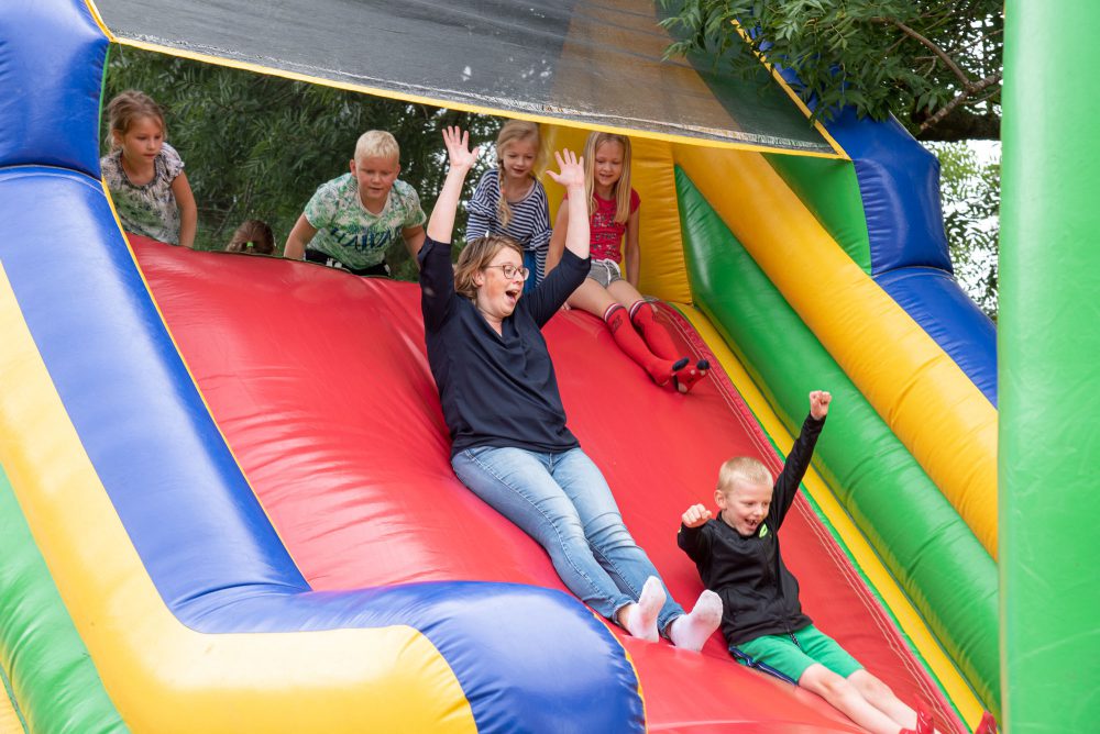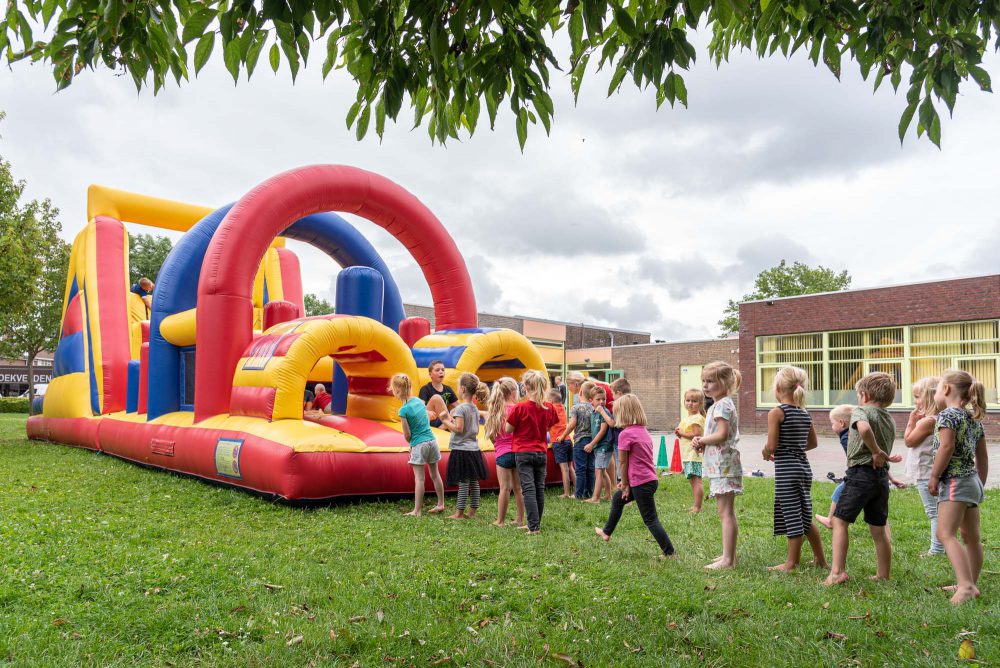 Elke klas mocht een uurtje komen “stormen”. Voor groep 1 -4 was er een uitdagende stormbaan waar de kinderen heerlijk vanaf konden glijden. Voor de oudere kinderen was er een extra lange stormbaan. Ook de leerkrachten en de directie hebben zich niet laten kennen en gingen de uitdaging aan om met de kinderen samen te stormen. Er waren heel veel blije gezichtjes te zien! Kind & Co zorgde voor popcorn en in de middag werden de kinderen getrakteerd op ijs. Het was een echte feestdag!