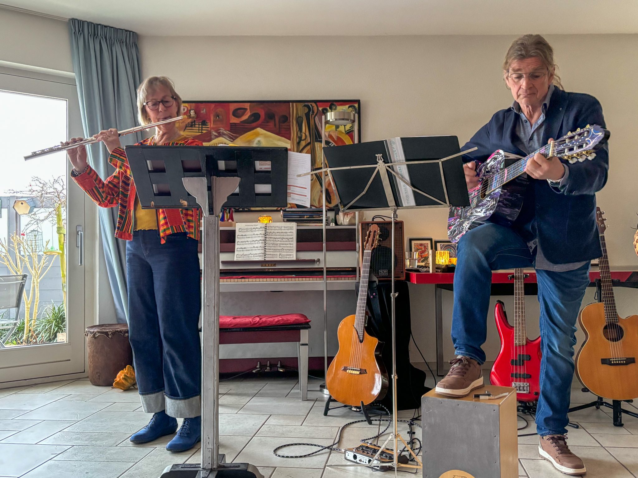 Fluitiste Trudi Bos en gitarist Hans van der Meer nemen u mee op een muzikale reis rond de wereld. Met verschillende fluiten en een kleurrijke verzameling gitaren – van klassiek tot staalsnaar en zelfs een verrassend uitstapje – klinkt muziek uit vele landen en stijlen.
