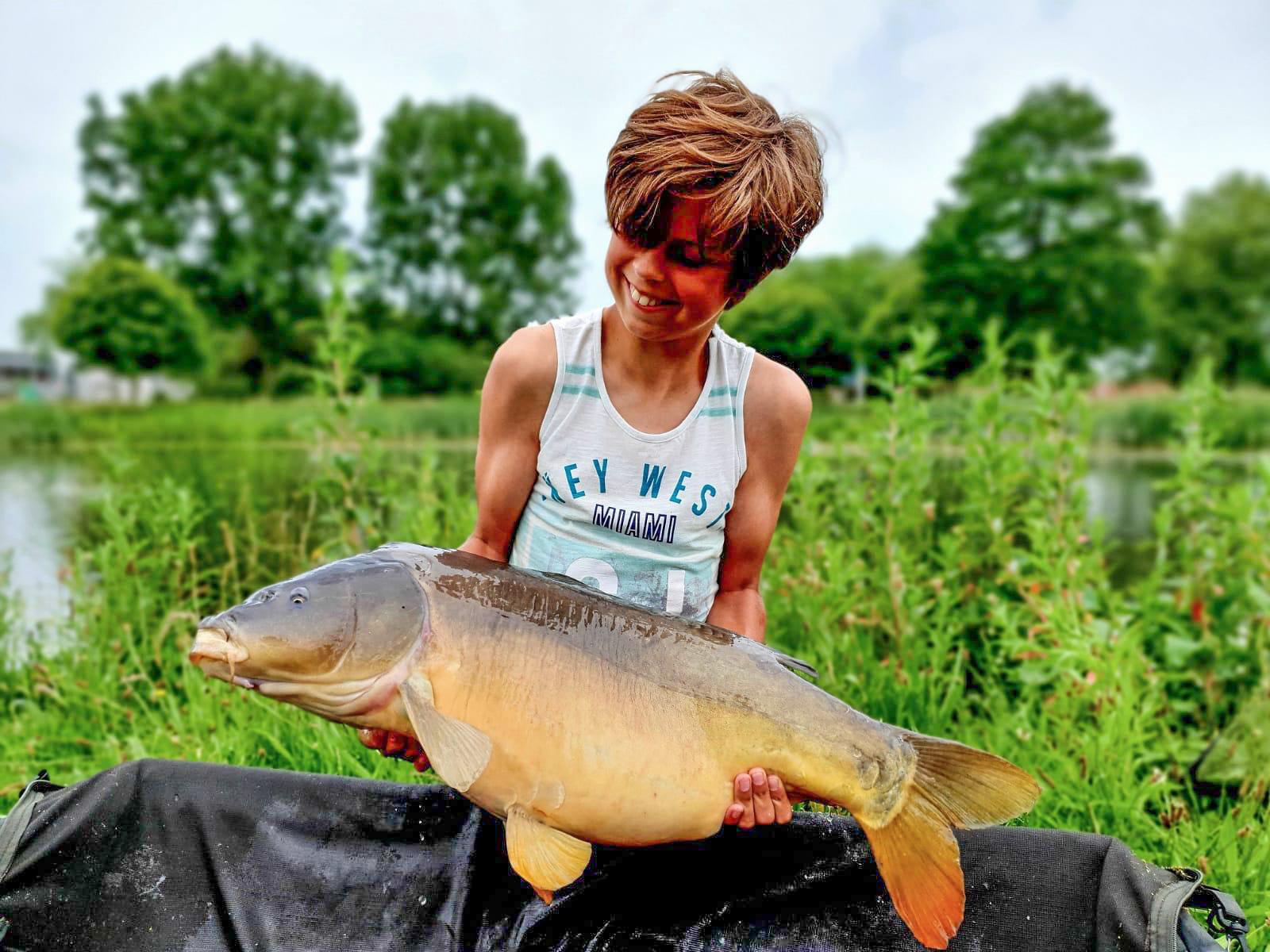 Fabian Raaphorst staat trots op de foto met een spiegelkarper