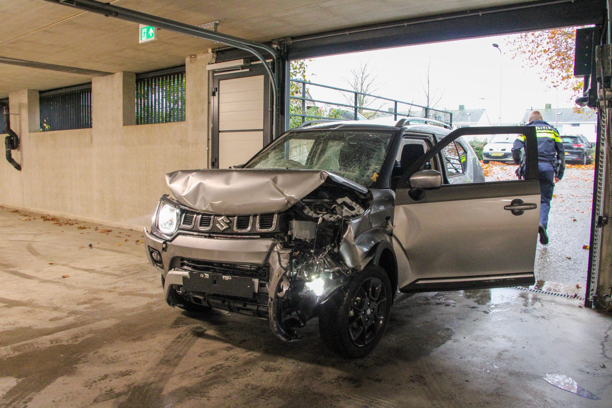Volgens omstanders reed de bestuurder van een oprit naar beneden en botste daarbij hard tegen een garagedeur. De deur werd volledig uit het kozijn gereden en een deel van de constructie werd meegesleurd. De auto kwam uiteindelijk tot stilstand tegen een muur van de woning.