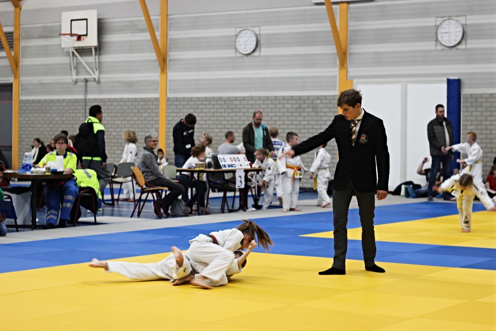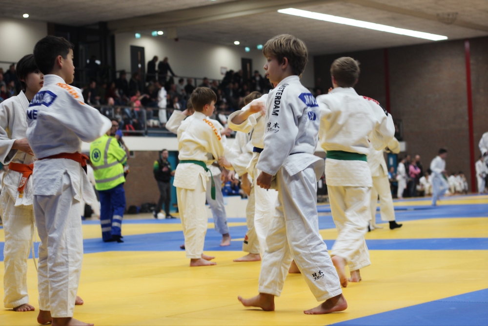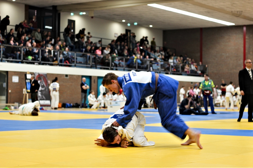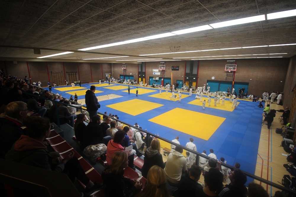 Het is druk in Bodegraven. Alle drukte leidt naar De Sporthoeve, waar meer dan 1000 judoka’s duelleren, met hun coaches aan de zijlijn en hun ouders op de tribune. Judoka’s van 4 tot 40 jaar laten zien wat ze kunnen in zo’n vier wedstrijden, in de zaal die bekleed is met judomatten. Na iedere poule worden de prijzen uitgedeeld aan de judoka’s.