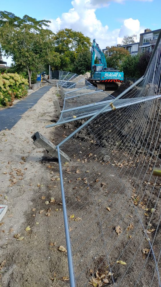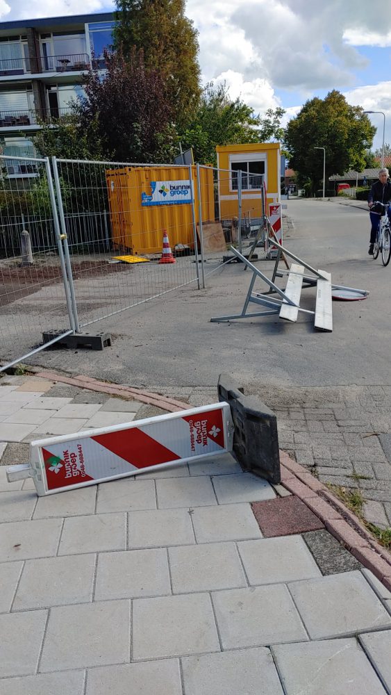 Onvrede in Reeuwijk. Verschillende hekken zijn omgevallen op een plek waar doorgaans werkzaamheden worden verricht.