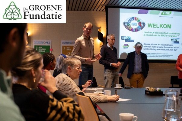 De deelnemers aan de Groene Fundatie hebben elkaar gevonden rondom de wereldduurzaamheidsdoelen (de zogenaamde SDG’s). Ze dragen daar elk op eigen wijze een steentje aan bij. De één meer met bijv. afvalvermindering, de ander meer met schone energie, biologische voedselproductie, tweede handsspullen of deelauto’s.