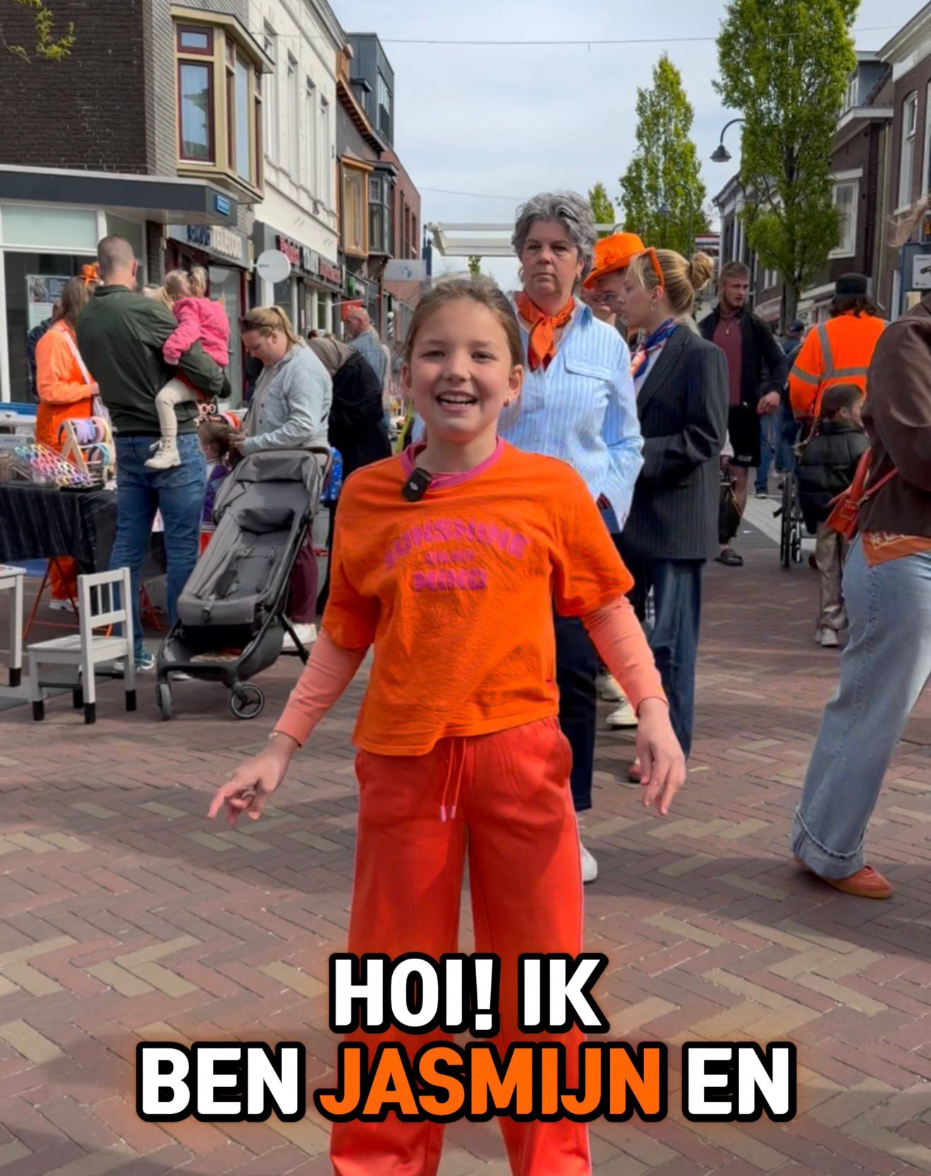 🎤 Jasmijn Timmerman (9) nam de presentatie voor haar rekening en sprak verschillende kinderen aan met leuke en spontane vragen. Zo wilde zij onder meer weten wat kinderen het leukste vinden aan Koningsdag, wat zij verkochten op de vrijmarkt en wat zij met het opgehaalde geld van plan waren te doen.