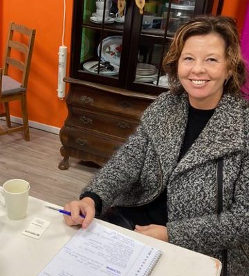 Foto: klimaatburgemeester Gertrud de Roos tijdens haar inloopuurtje in de klimaatwinkel