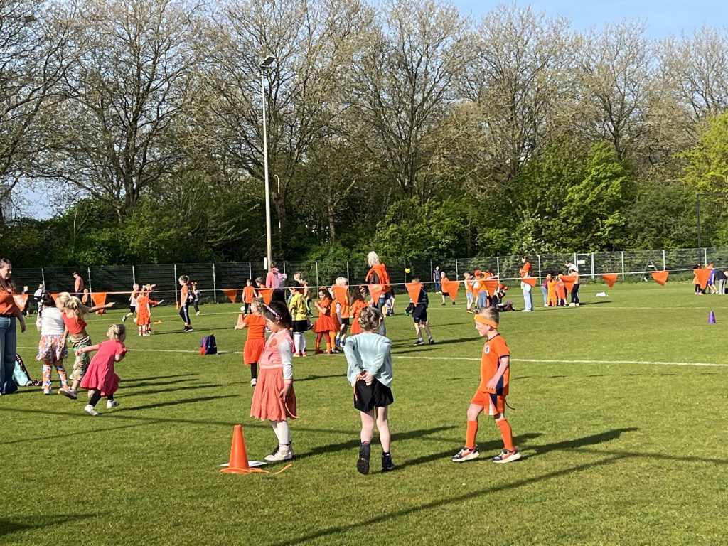 Vanmorgen hebben we met alle leerlingen van school Koningsspelen gehouden op de voetbalvelden van Rohda’76.
