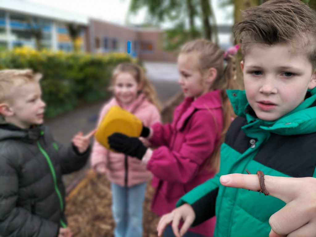 De kinderen krijgen niet alleen buiten les, maar ook les over buiten. Dit kan georganiseerd maar ook spontaan zijn bij het ontdekken van jonge plantjes of wanneer er een vlinder voor je neus landt.