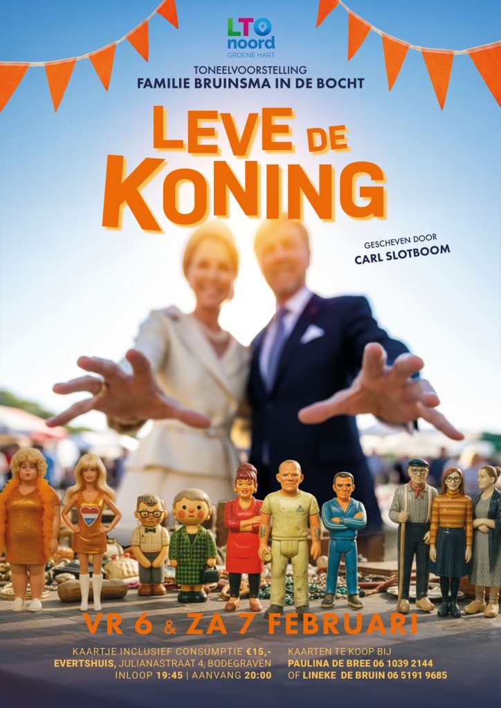 De toneelgroep van LTO Groene Hart staat weer te springen om hun publiek te trakteren met een hilarische voorstelling. Deze keer spelen ze de klucht van de Familie Bruinsma, Leve de Koning. Een stuk geschreven door Carl Slotboom vol humor en oranje.