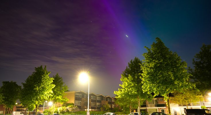 Het noorderlicht (aurora borealis) was vrijdagavond en afgelopen nacht duidelijk te zien in heel Nederland. Volgens Weeronline was het poollicht zelfs op plaatsen met veel omgevingslicht, zoals Amsterdam, goed waarneembaar. Op sociale media postten veel mensen foto’s en filmpjes van het verschijnsel.