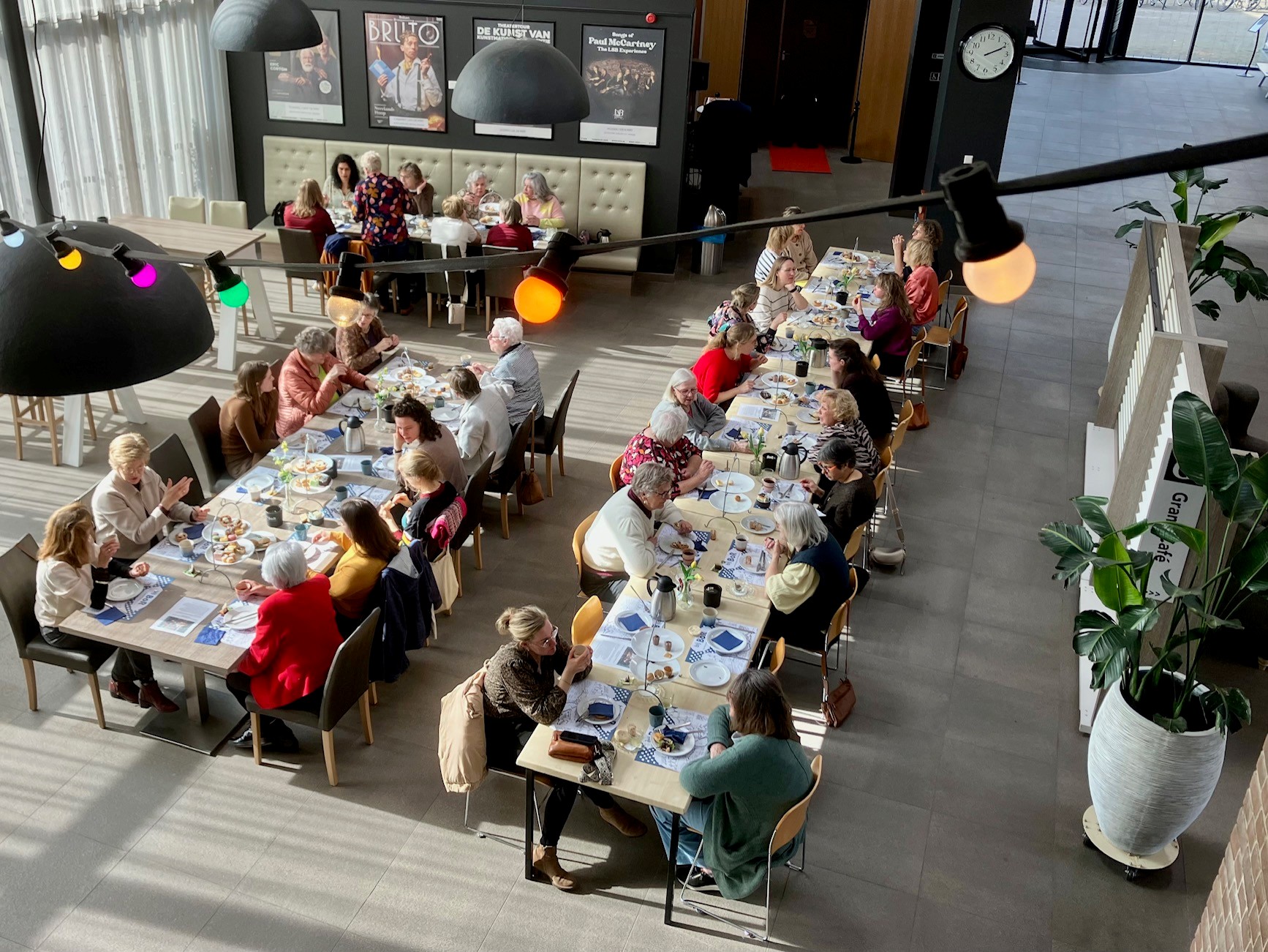 De middag begon met een sfeervolle High Tea in de foyer. Er werd volop genoten van de heerlijke lekkernijen die waren verzorgd door BijBoR. Op tafel stonden onder andere belegde broodjes, zoetigheden, hartige snacks en natuurlijk onbeperkt thee. Het zorgde voor een ontspannen en gezellige sfeer waarin bezoekers elkaar ontmoetten en met elkaar in gesprek gingen.