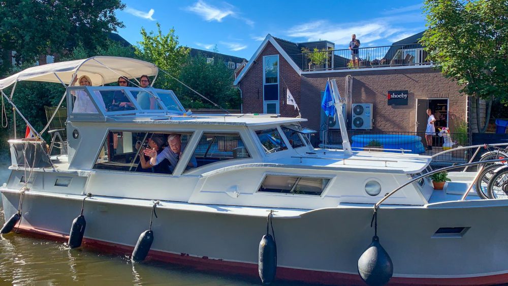 De van het programma ‘Heel Holland Bakt’ bekende presentatoren meerden 6 augustus aan in Bodegraven-Reeuwijk. André van Duin en Janny van der Heijden varen namelijk door heel Nederland voor het programma ‘Denkend aan Holland’. Ze zijn daar voor opnames. Ook teckel Nhaan van Janny van der Heijden is present.