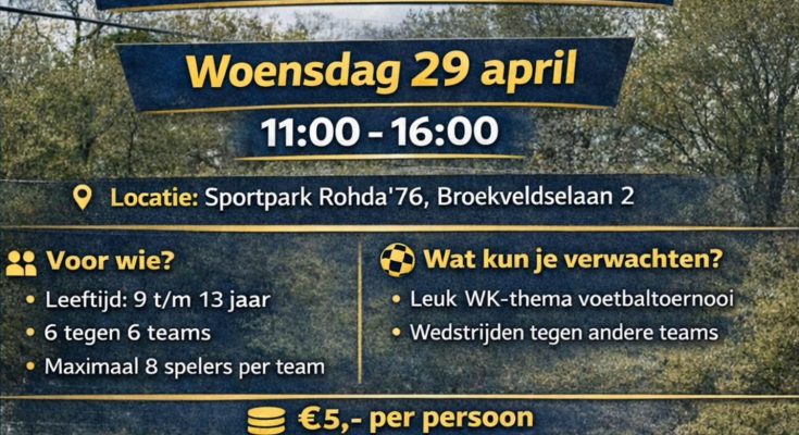 Nog maar 9 dagen tot het toernooi! Op woensdag 29 april van 11:00 – 16:00 uur bij Sportpark Rohda ’76 in Bodegraven.