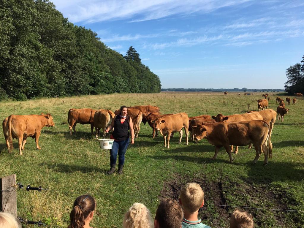 Boerin Elvira heeft twee jaar geleden Bodegraven verruild voor de provincie Drenthe. Ze vertelt waar het idee van de koeien safari vandaan komt. “We lieten mensen die bij ons op visite kwamen wel eens het gebied zien en die vonden het zo mooi, toen dacht ik daar moet ik wat mee. En Bij onze boerderij is een winkel en mensen kijken in de winter vaak op stal bij de koeien. Dat kan zomers niet want dan is alles buiten. Daarom dit idee. En mensen vinden t erg leuk.”