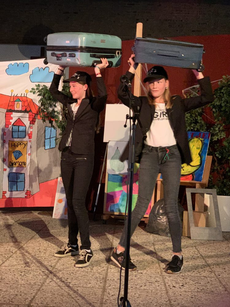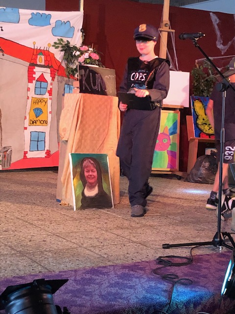 Het enthousiasme van de leerlingen spetterde af tijdens de opvoering van een verhaal over een verwaarloosd museum waar een kostbare geluksdiamant wordt gevonden. Dat trekt natuurlijk allerlei bijzondere gasten met niet allemaal even goede bedoelingen. De geluksdiamant, een waardeloos stukje glas, komt bij de eigenaresse terecht voor wie de emotionele waarde groot is. De museumbezitters verkopen toch een paar topstukken waaronder de Mona Nelly met een knipoog naar directeur van De Regenboog Nel van Galen. En zo is er toch een happy end wat tijdens de slotmedley al zingend uitbundig gevierd wordt met het afschieten van de nodige confetti kanonnen.