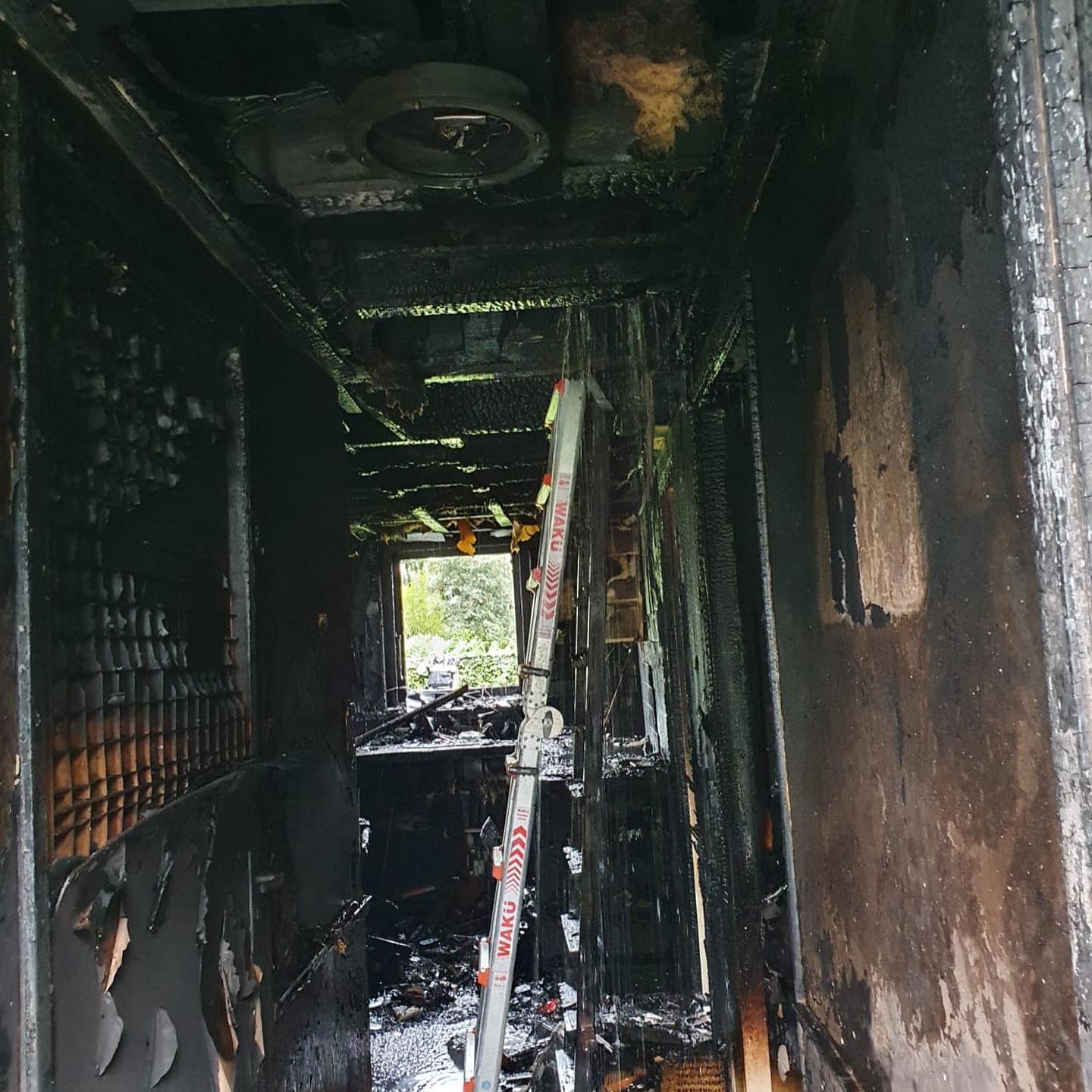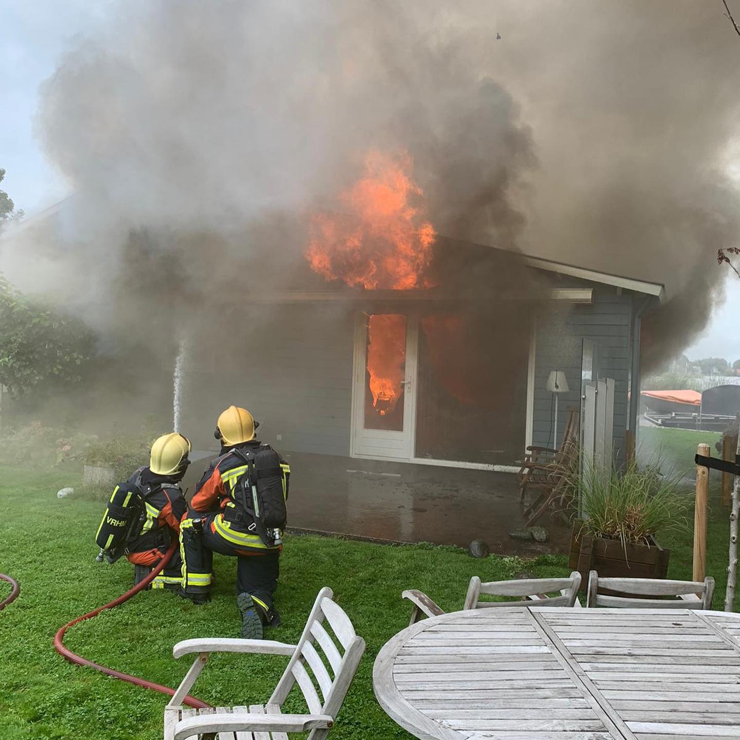 Op dat moment kwamen de rookwolken al uit de vakantiewoning. Niet veel later waren de vlammen zichtbaar. Na enige tijd had de brandweermannen het vuur onder controle. Echter is binnen alles verwoest.