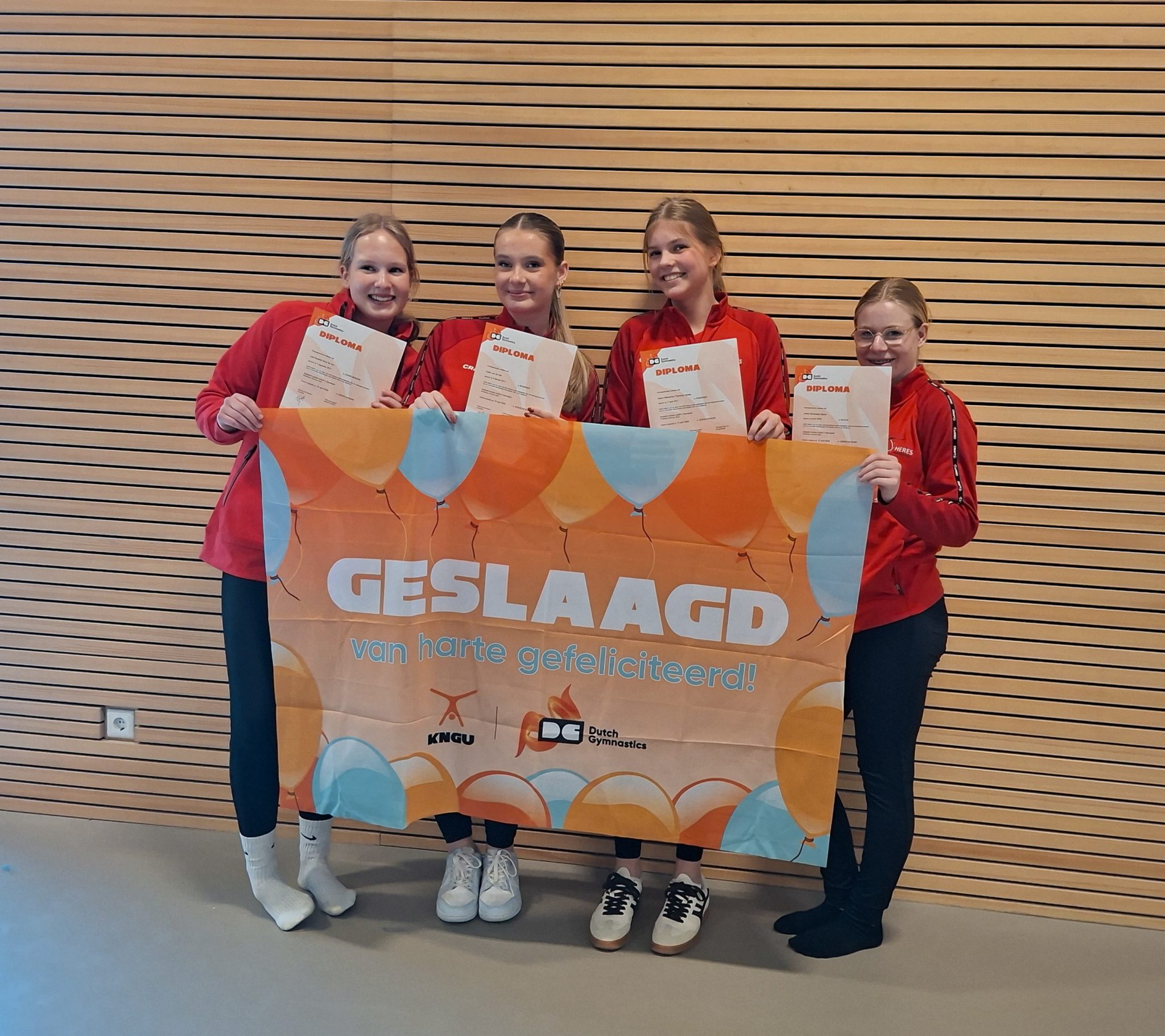 Ook de dag daarna was er mooi nieuws voor de vereniging. Vier turnsters ronden de opleiding gymnastiek assistent leider 2 af. Een mooie stap, waarmee zij hun rol binnen de vereniging verder versterken en nu met nog meer kennis en ervaring kunnen ondersteunen bij de lessen. Geweldig om te zien hoeveel passie deze meiden voor de turnsport hebben en hoe zij die nu ook willen doorgeven aan de volgende generatie!