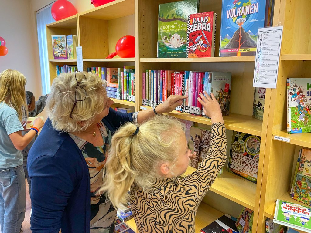 Na de officiële opening was er gebak voor iedereen en kon er rondgekeken worden in de school en natuurlijk de nieuwe bieb!