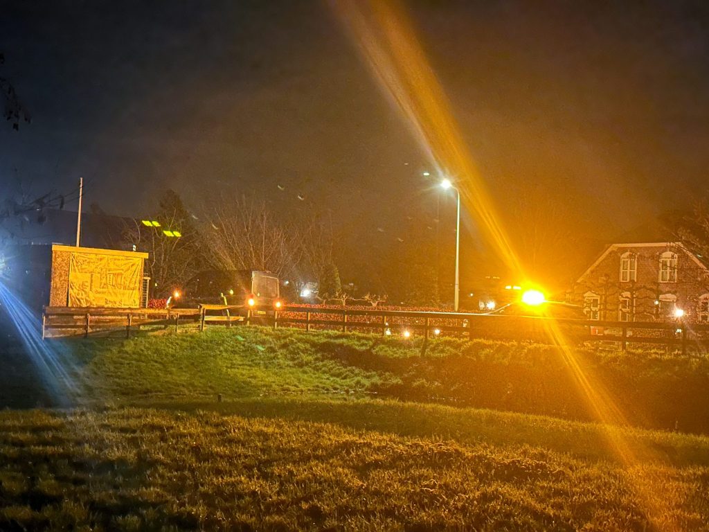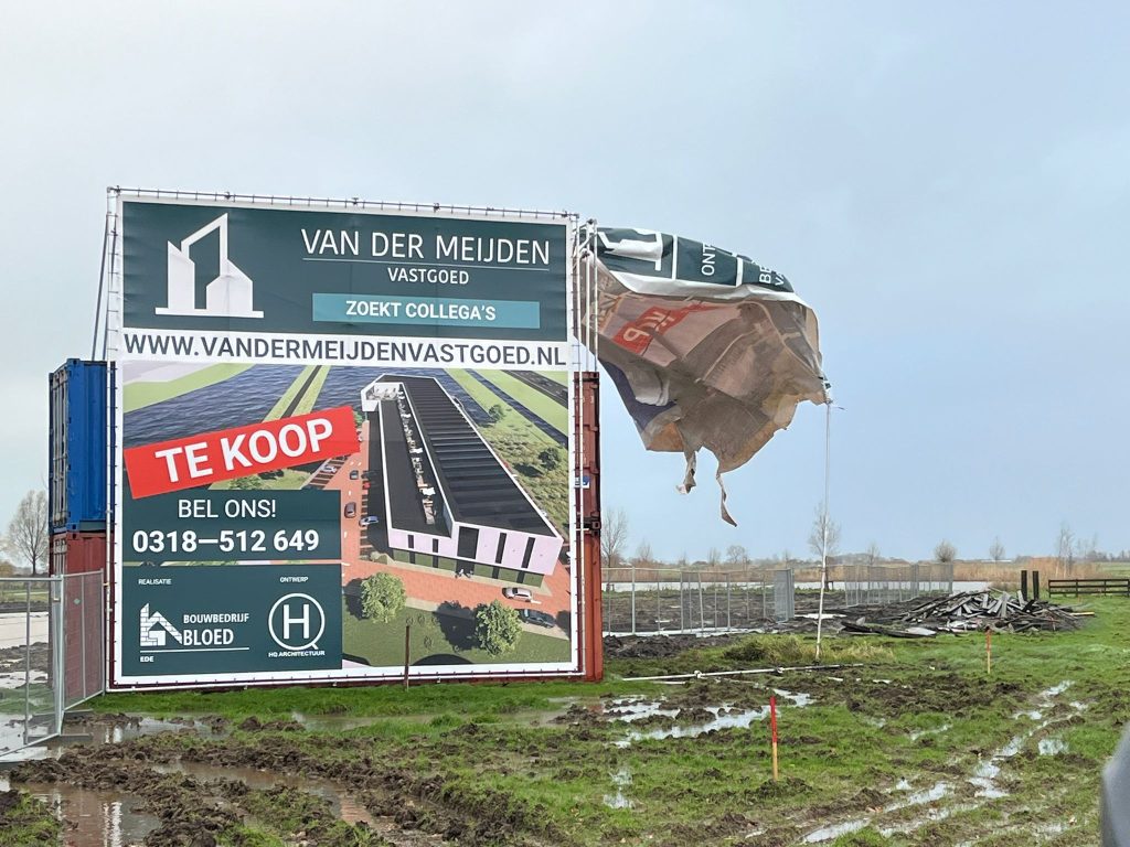 De brandweer van Bodegraven rukte uit naar de Boerderijweg vanwege stormschade. De doeken van een reclamepaal waren losgeraakt en dreigden verder schade te veroorzaken.