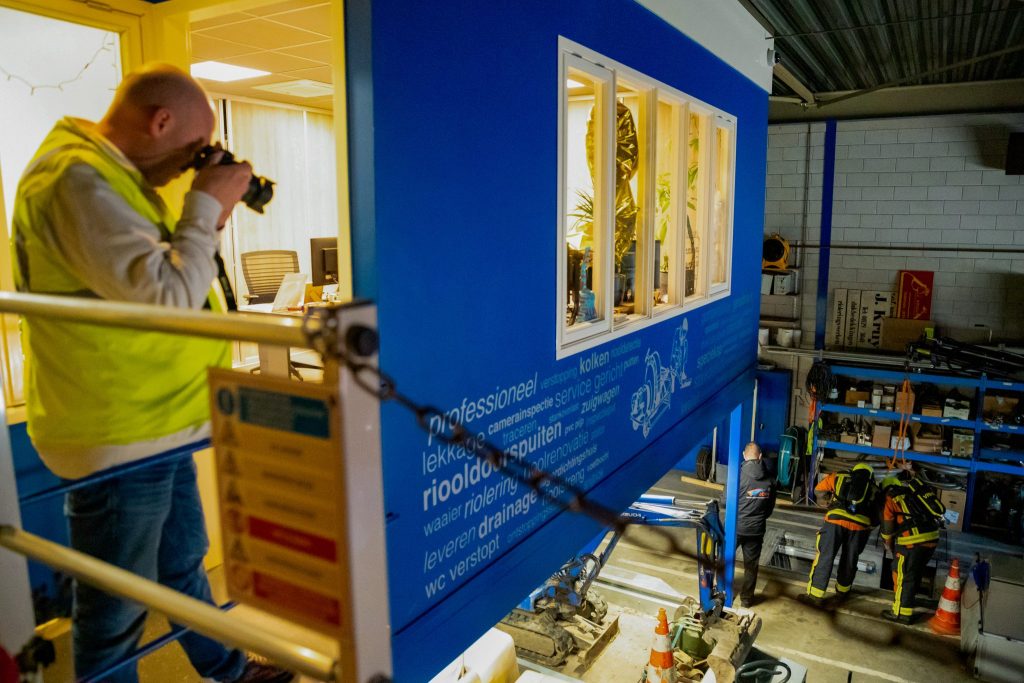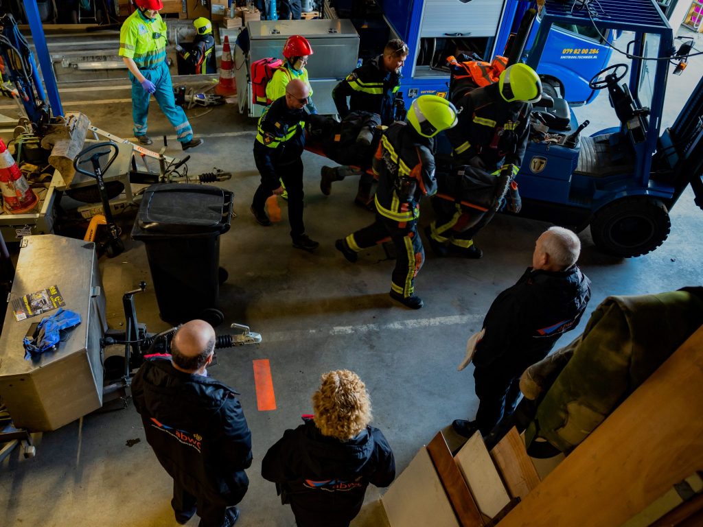 De aanrijding heeft het kraanvoertuig verplaatst waardoor de stempeling onder een van de steunpoten is verschoven. De trilplaat die in de kraan hing is hierdoor in de smeerput gevallen bovenop een medewerker. Deze trilplaat weegt meer dan 200 kilo! Met grote paniek alarmeert een van de medewerkers 112 en kwam er een brandweerploeg ter plaatse.