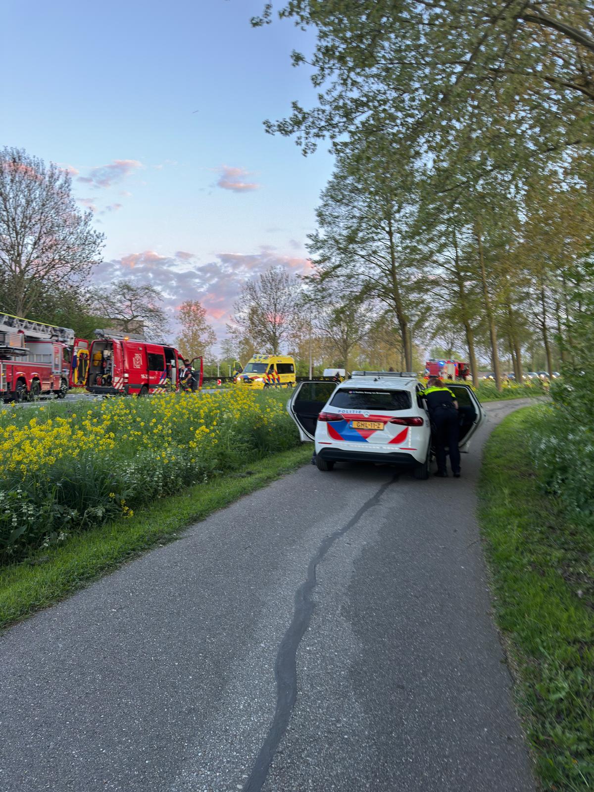 Onder meer duikers, de brandweer van Bodegraven en een ladderwagen uit Alphen aan den Rijn kwamen ter plaatse. De hulpdiensten positioneerden zich in de bocht van de weg, terwijl de politie het fietspad afzette om ruimte te maken voor de inzet.