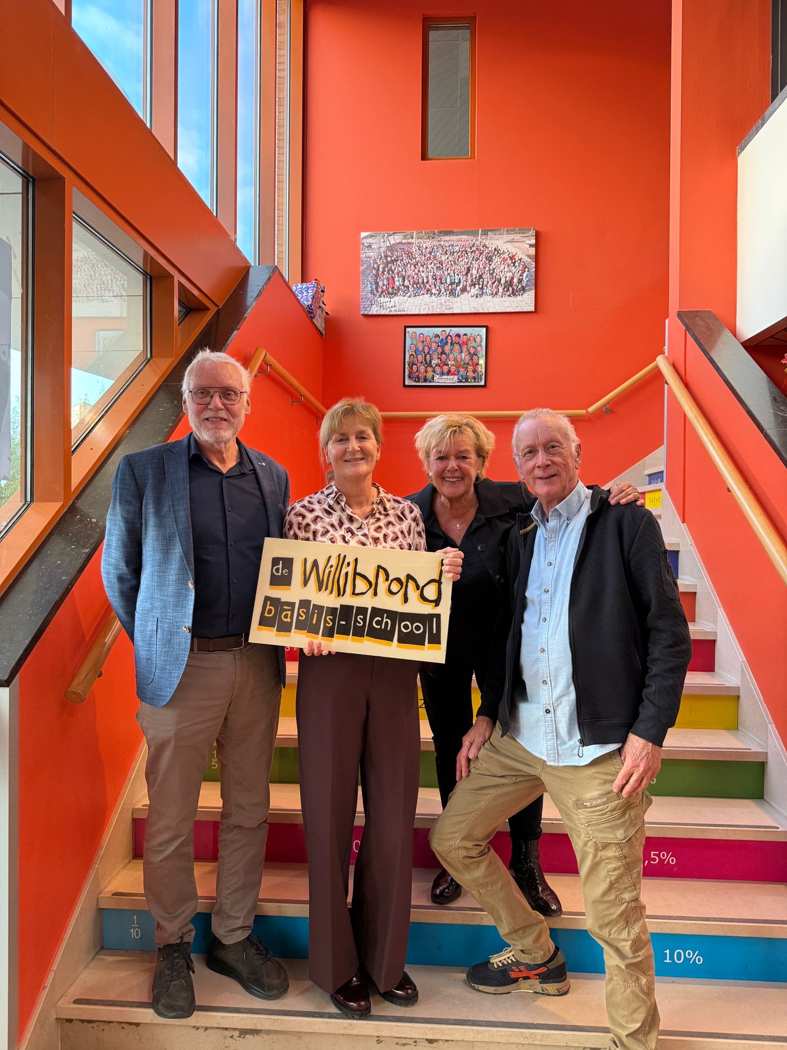 In de middag was er eerst een receptie voor ouders en verzorgers en daarna een bijeenkomst voor (oud)collega’s. Juf Karen werd toegesproken en bedankt. Bijzonder was dat er vele oud-collega’s aanwezig waren en zo ook waren de eerdere directeuren van de Willibrord, Hans Verkleij en Ton Nederhof aanwezig. Er werd een mooi plaatje van gemaakt.