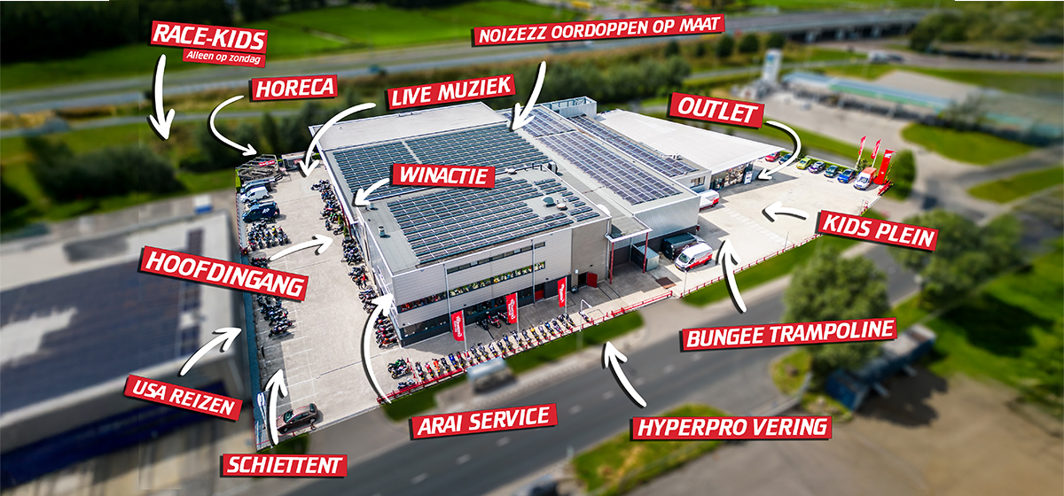 Naast shoppen en winnen is er volop beleving. Bewonder de MotoGP KTM van Brad Binder en de WSBK Yamaha van Andrea Locatelli, laat de kinderen los op het Race-Kids circuit of de bungee trampoline, en geniet zelf van live muziek, horeca en motorservices zoals een HyperPro veringcheck en Arai helmenservice.