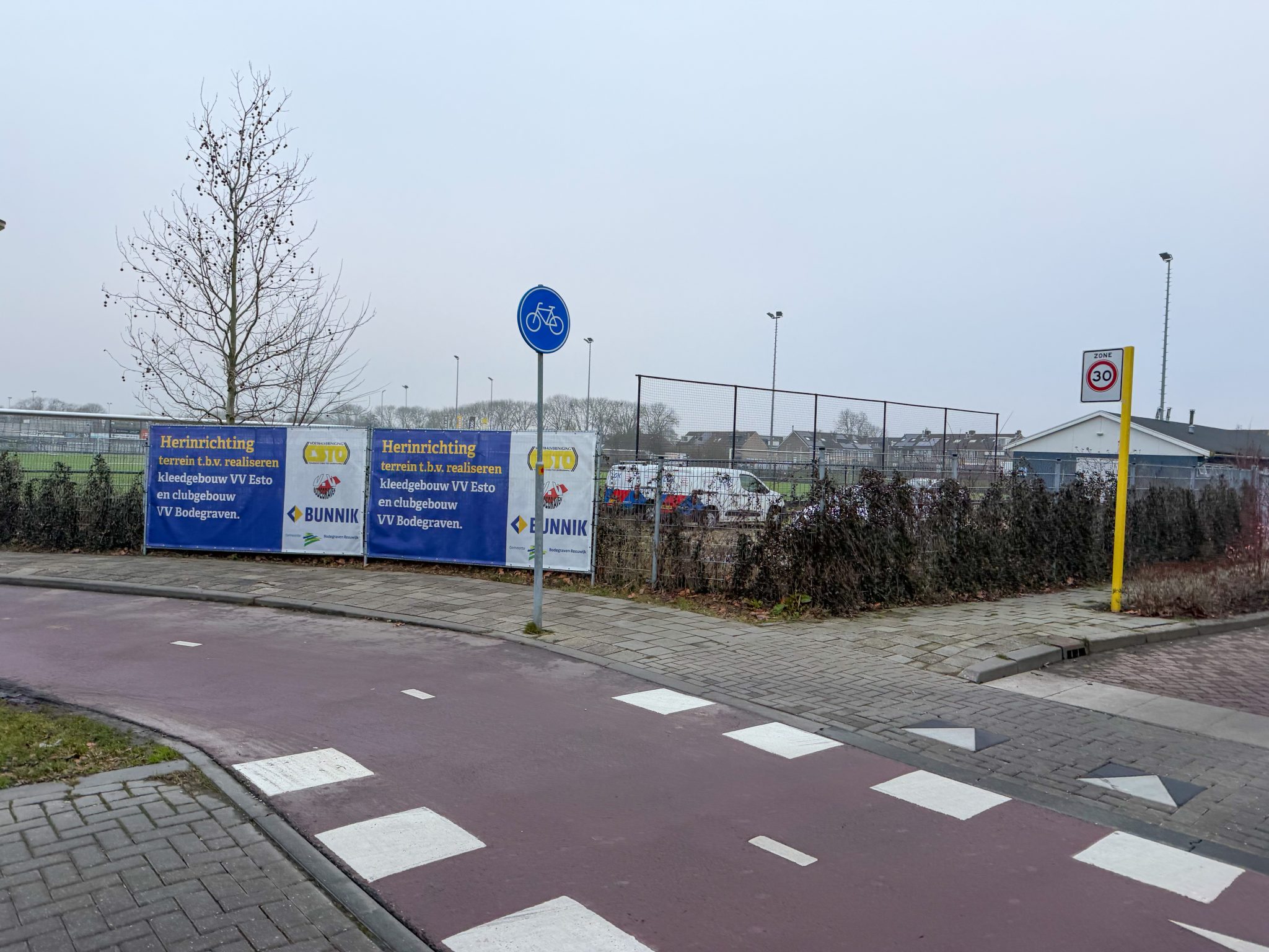 Op de plek van de oude hockeykantine verrijzen binnenkort vier nieuwe kleedkamers en een scheidsrechtersruimte. De uitbreiding is hard nodig om de groei van voetbalvereniging ESTO op te vangen en de verhuizing van VV Bodegraven mogelijk te maken.