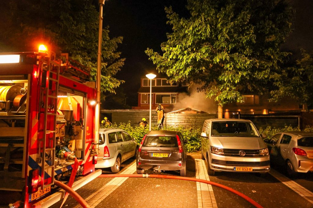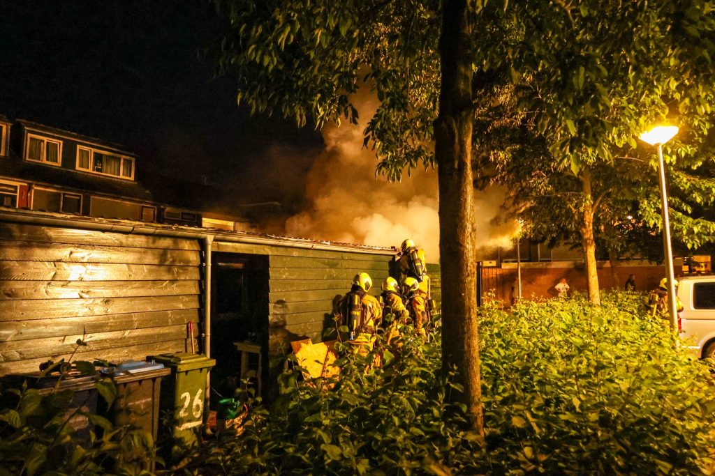 Bij aankomst van de brandweer sloegen de vlammen uit het schuurtje. De brandweer schaalde op naar middelbrand.