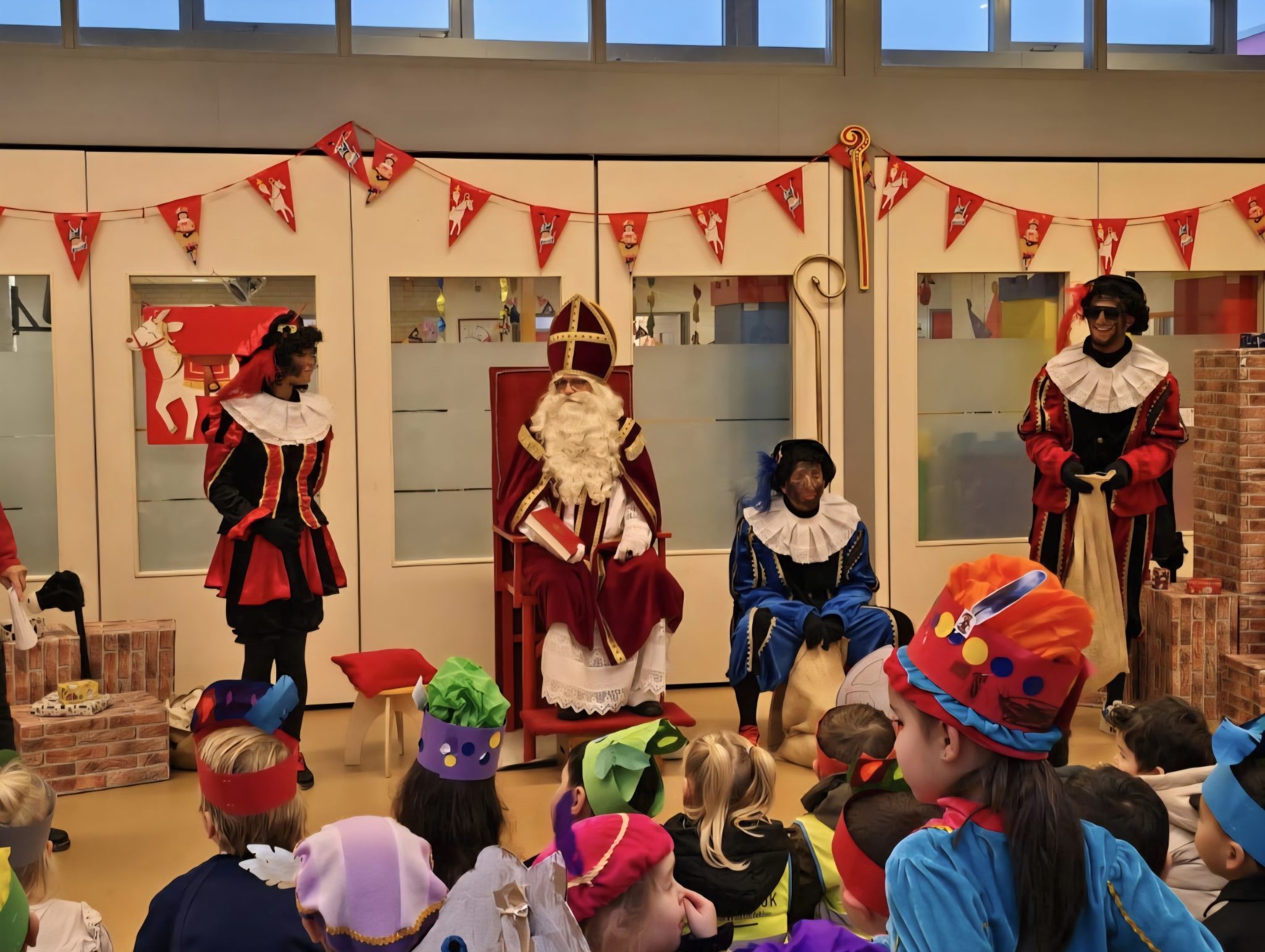 Vrijdag arriveerde Sinterklaas op bijzondere wijze bij IKC Schatrijk. Niet op Ozosnel – die mocht vanwege een drukke avond op stal blijven – maar in een heuse paardentrailer, samen met maar liefst drie pieten. De Sint had zijn stokpaardjes van stal gehaald, en samen met Gangster-piet, Bep en Hoofdpiet reed hij een vrolijk parcours over het schoolplein. Het publiek trakteerde hen op een daverend applaus voordat iedereen naar binnen ging.