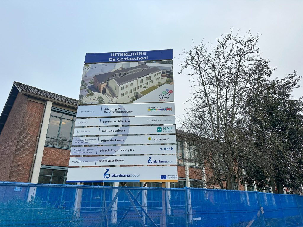 De voorbereidingen voor de nieuwbouw van de Da Costaschool aan de Laan van Turkenburg zijn inmiddels duidelijk zichtbaar. Enkele weken na de start van de werkzaamheden is het achterste gedeelte van het schoolgebouw grotendeels gesloopt. Op recente foto’s is goed te zien dat vrijwel het hele achterdeel inmiddels is verdwenen.