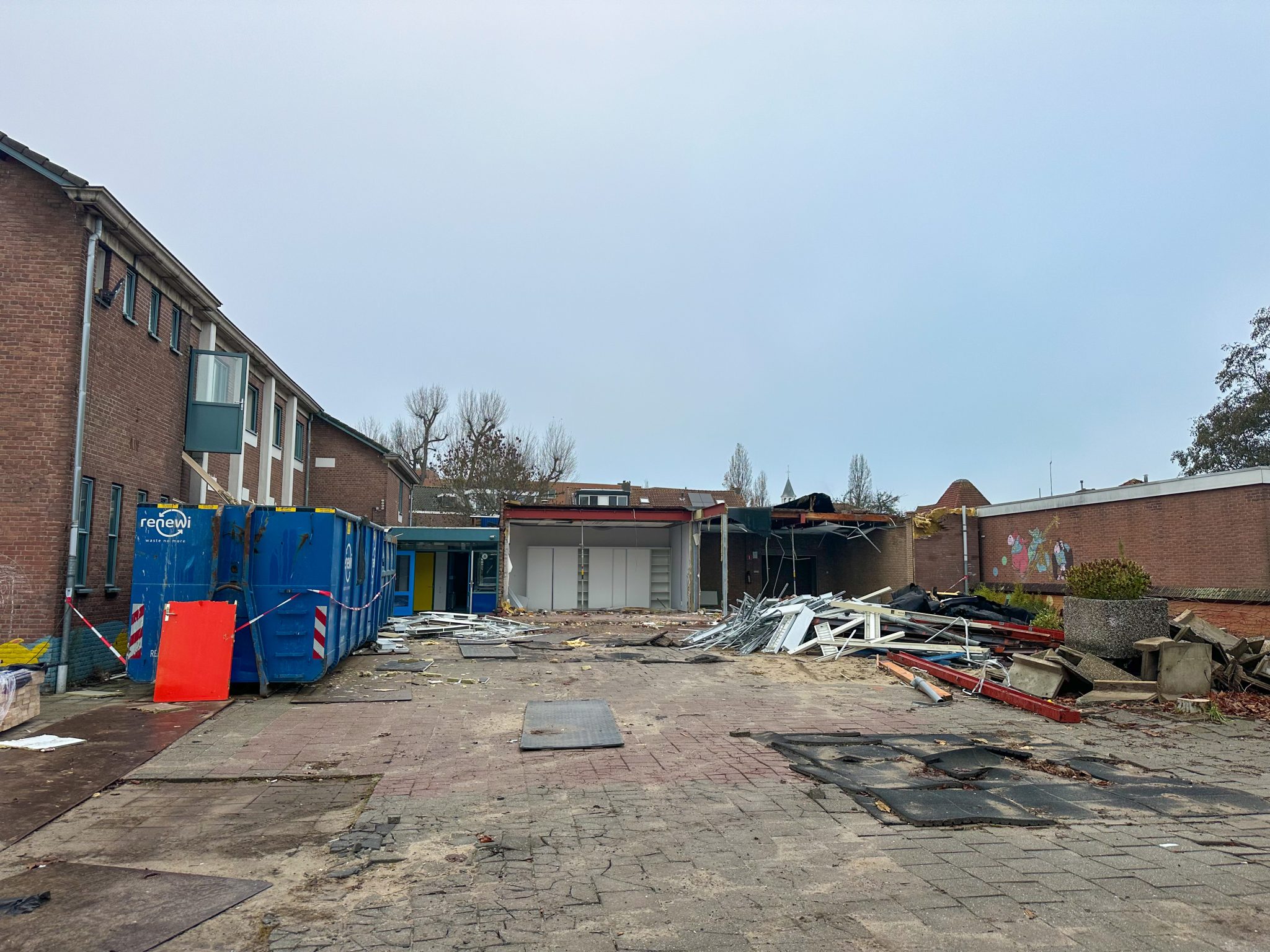 Sloopwerkzaamheden Da Costaschool zichtbaar gevorderd: achterzijde vrijwel verdwenen