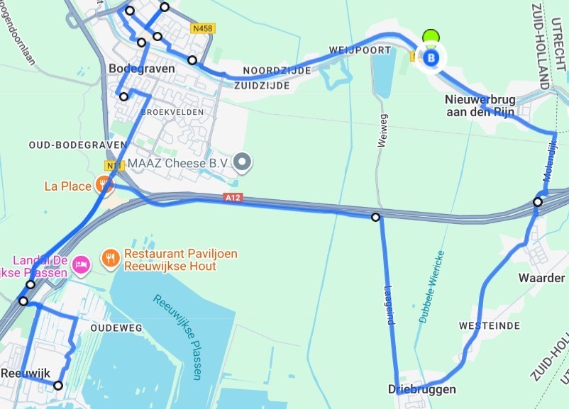 De route start op Weijland en gaat vervolgens via de Noordzijde richting Bodegraven. Daarna rijdt de stoet onder andere langs: