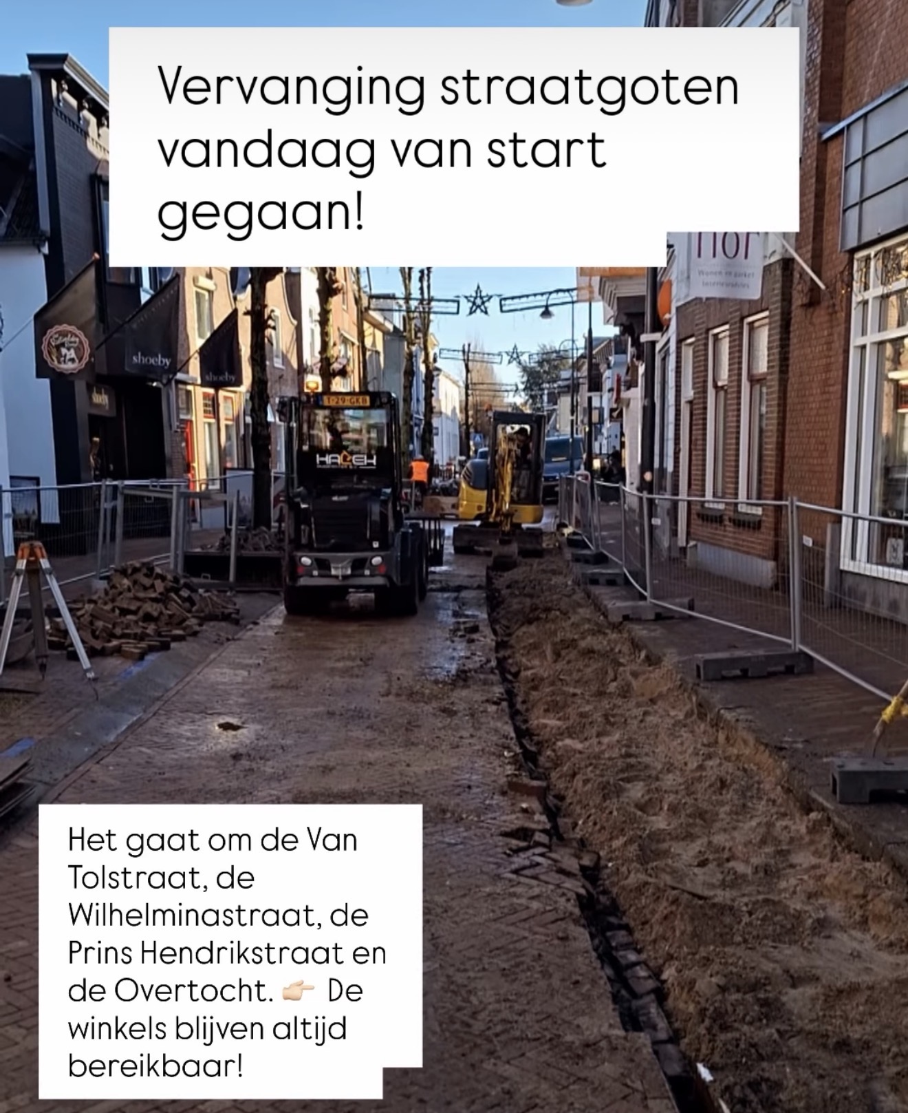 De gemeente gaat de water afvoerende goten (lijngoten) die in de rijbaan ter plaatse van de Van Tolstraat, Wilhelminastraat, Prins Hendrikstraat en Overtocht vervangen. De goten die in de rijbaan liggen zijn toe aan vervanging. De huidige deksels komen los en zorgen voor een klapperend geluid. Het nieuwe type goot bestaat uit één massief gegoten geheel waardoor deze niet meer kan klapperen. Dit type goot is ook een stuk stiller wanneer er over de goot heen gereden wordt. In onderstaande afbeelding is het projectgebied omlijnd.