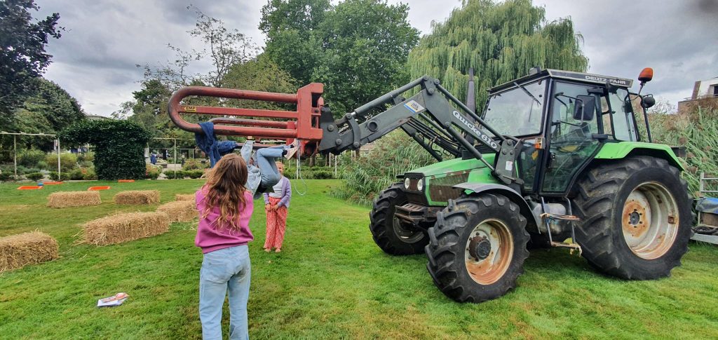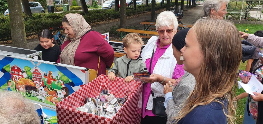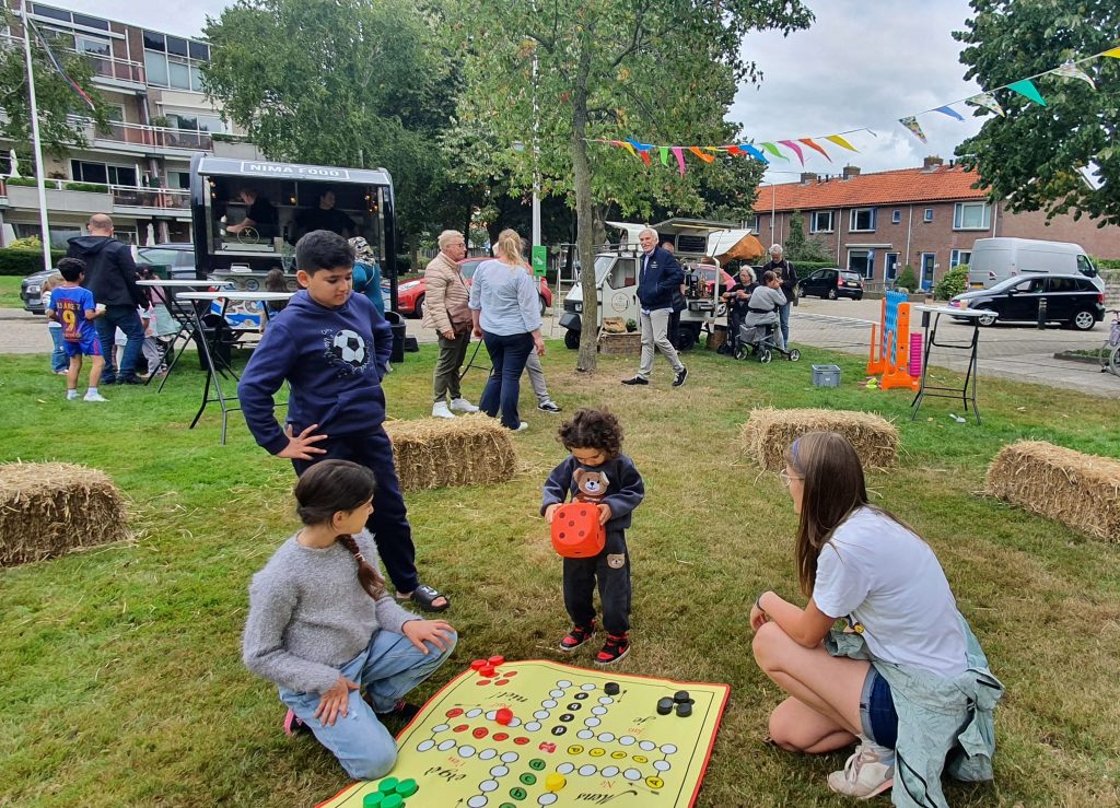 Kinderen konden spijkerbroek hangen aan een trekker van boer Arie, eendjes vangen in de fontein, oud-Hollandse spelletjes spelen of grabbelen naar een cadeautje. Er waren poffertjes, koffie van de baristakar en vooral: heel veel buurtgezelligheid.