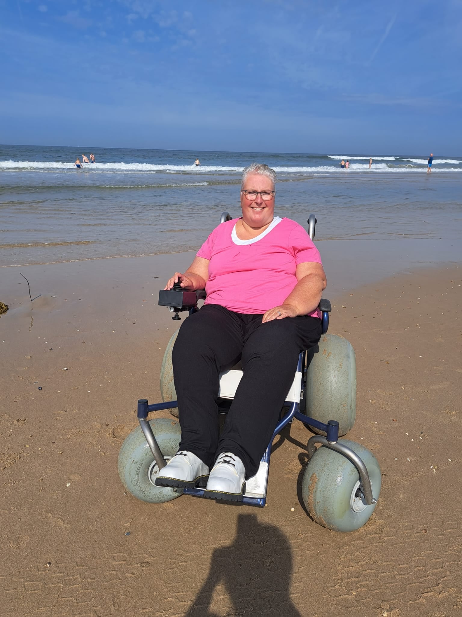Karin is een dame van middelbare leeftijd die sinds 2014 leeft met een hoge dwarslaesie. In haar dagelijks leven is zij afhankelijk van haar elektrische rolstoel, een robotarm en de onmisbare hulp van haar gezin, familie en professionele zorgverleners.