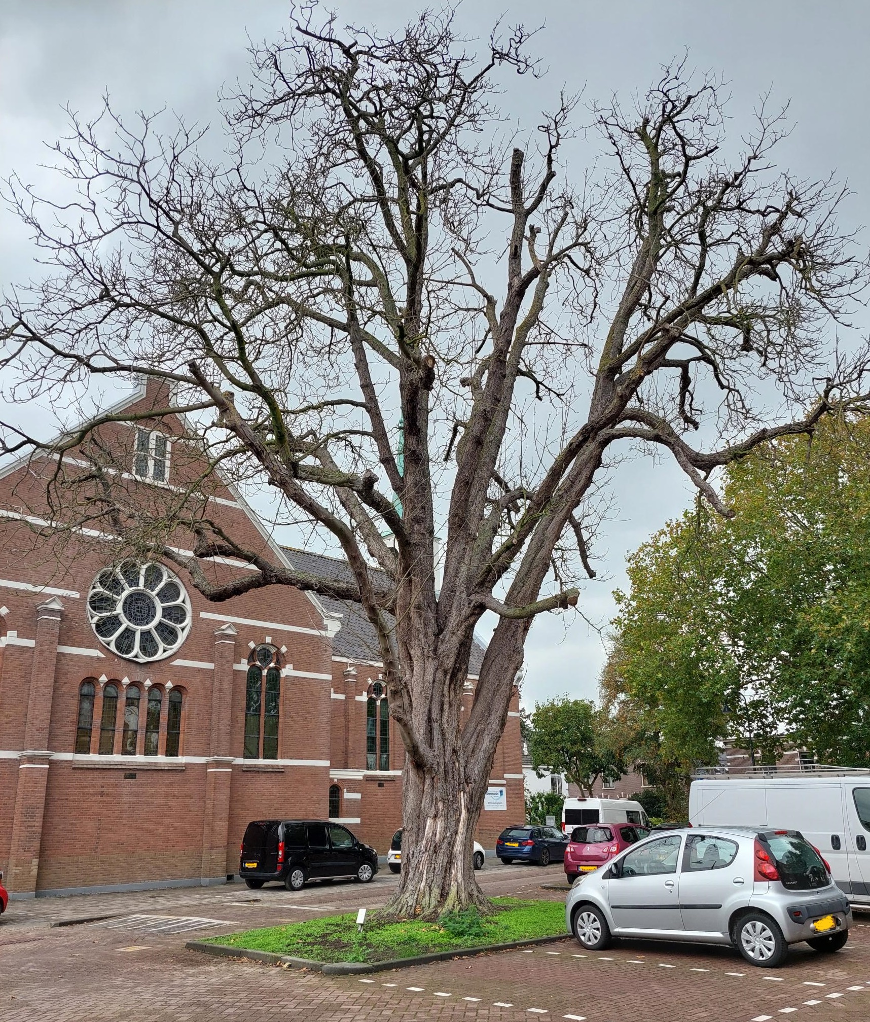 Helaas, de grote kastanjeboom op de parkeerplaats tegenover de Ontmoetingskerk aan de Bodegraafse Spoorlaan wordt, voor de veiligheid, gekapt. De kastanje lijdt aan de kastanjebloedingsziekte en heeft veel last van de kastanjemineermot. Vorig jaar is geprobeerd om de boom te redden door goed te snoeien, zodat de boom misschien nog kon herstellen. Dit heeft niet mogen baten.