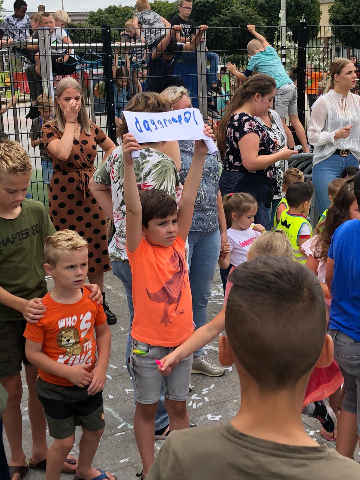 Festival aan Huis verzorgde een super optreden op het schoolplein. Tevens nam directrice Leonie afscheid. De kinderen kunnen nu lekker gaan genieten van hun zomervakantie!