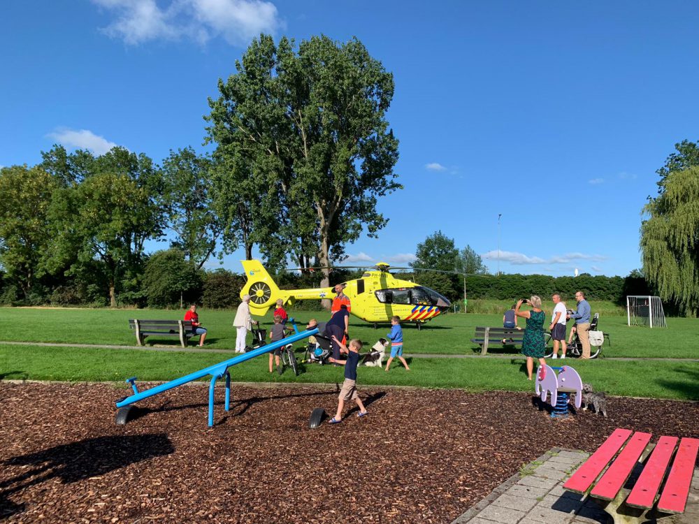 De politie bracht de trauma arts en de verpleegkundige terug naar de traumahelikopter. Deze landde in het parkje aan de Wilgenoord. Bij de helikopter was het druk met mensen die een kijkje kwamen nemen.