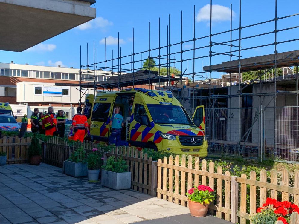 Op de bouwplaats is een bouwvakker van een steiger naar beneden gevallen. De hulpdiensten zijn lange tijd bezig geweest om de persoon te stabiliseren. Na ruim een half uur reed de ambulance met daarin het slachtoffer weg van de locatie.