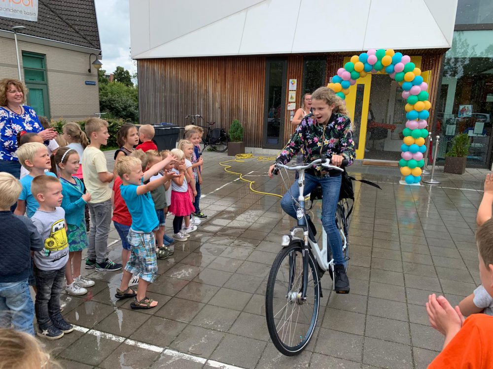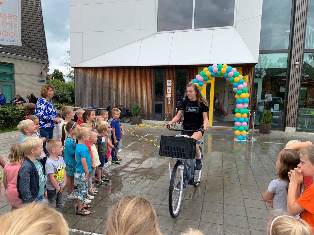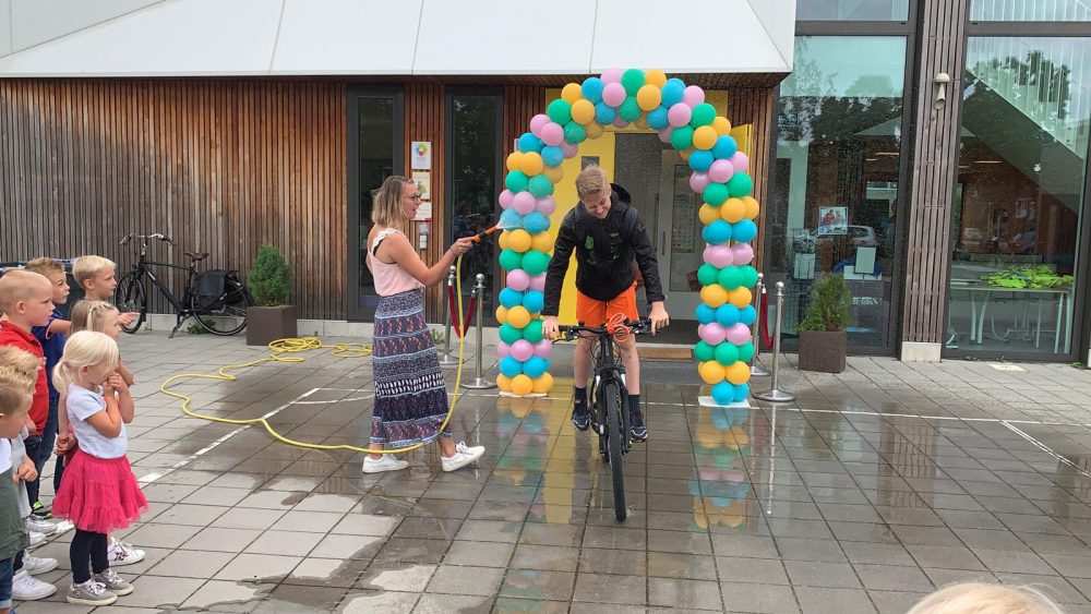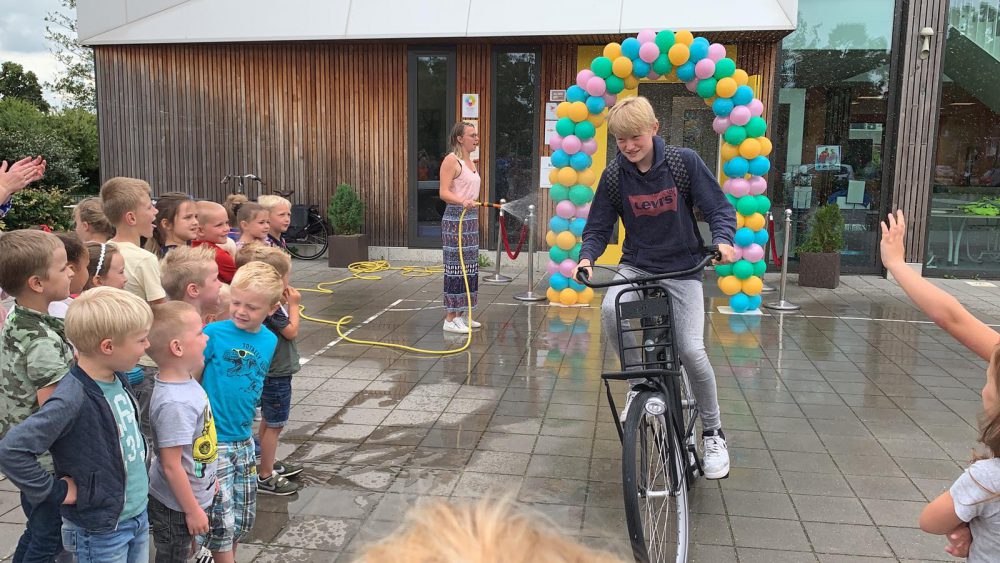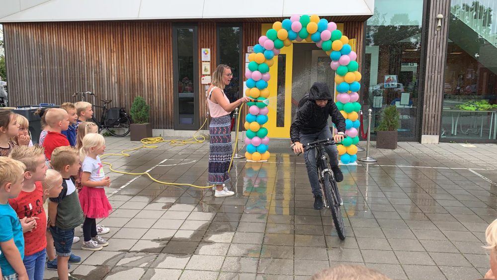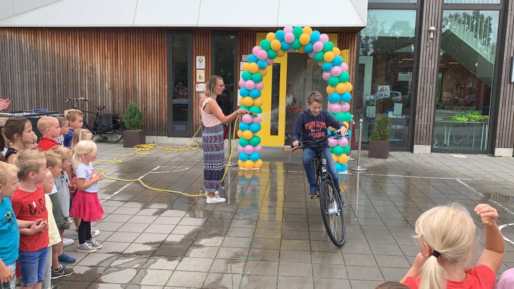 De laatste schooldag in groep 8 mag een bijzonder moment zijn. Groep 8 uitzwaaien mag dus wel op een extra speciale manier gebeuren. De leerlingen van de Beatrixschool werden de school uitgeblazen en buiten stond juf Naomi met een waterslang klaar om in actie te komen.
