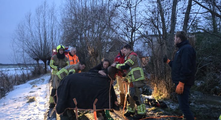 Brandweer redt pony uit ijskoud water aan Gravekoopsedijk