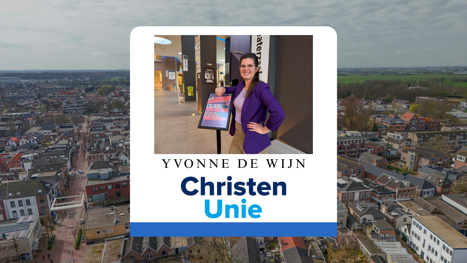 De aftrap wordt verzorgd door Yvonne de Wijn, lijsttrekker van de ChristenUnie en tevens de jongste lijsttrekker in de gemeente. In vier korte vragen vertelt zij waar haar partij voor staat en wat zij de komende jaren wil betekenen voor Bodegraven-Reeuwijk.