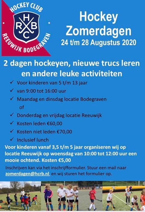 Wacht niet langer en geef je vandaag nog op! Inschrijfformulier voor de hockey Zomerdagen is te vinden op www.hcrb.nl of mail naar Zomerdagen@HCRB.nl